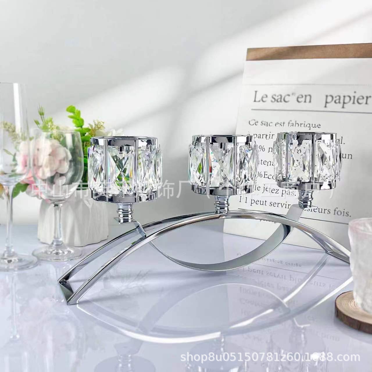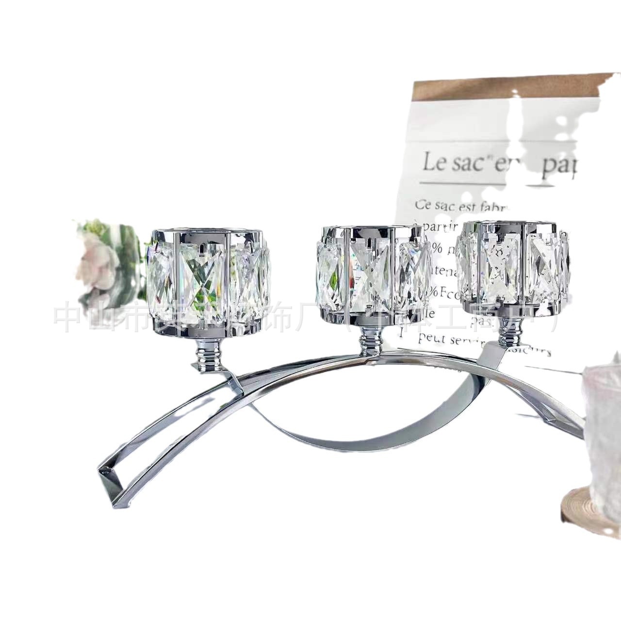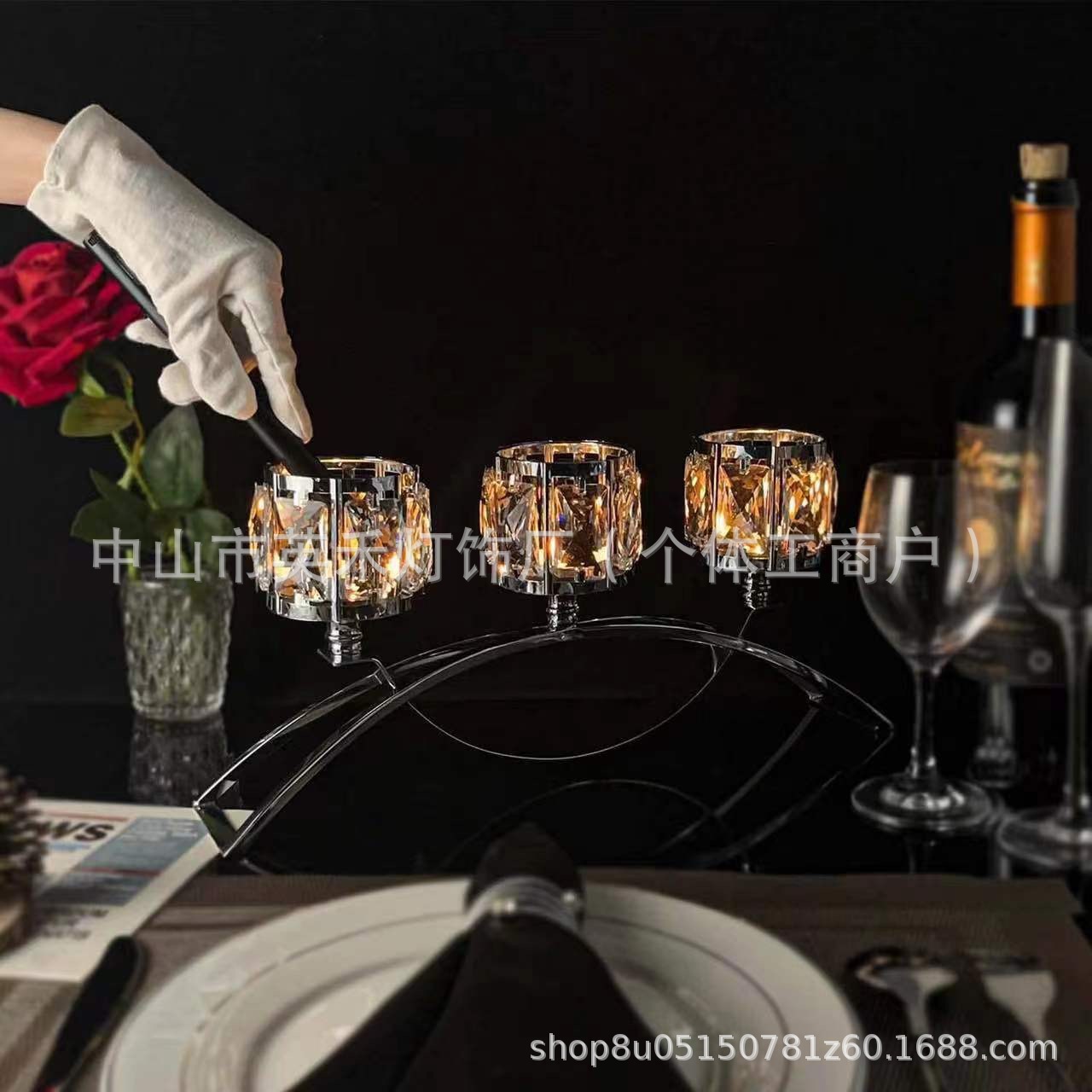 北欧铁艺电镀水晶烛台家居装饰烛光晚餐道具婚庆三头玻璃烛台架