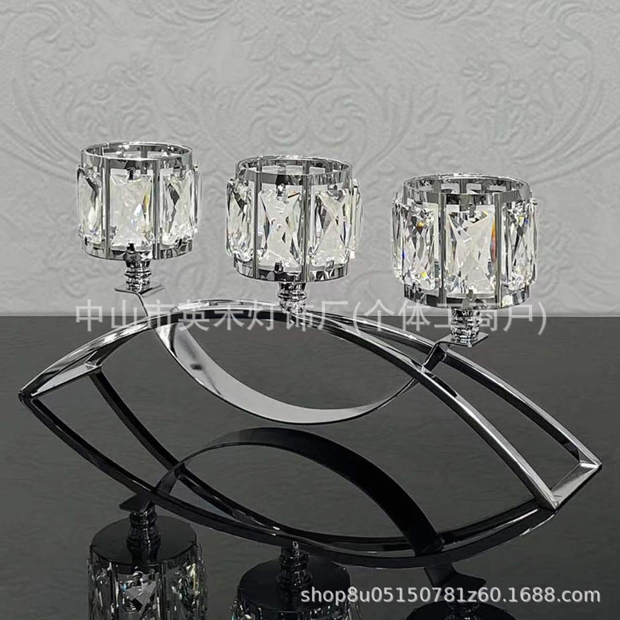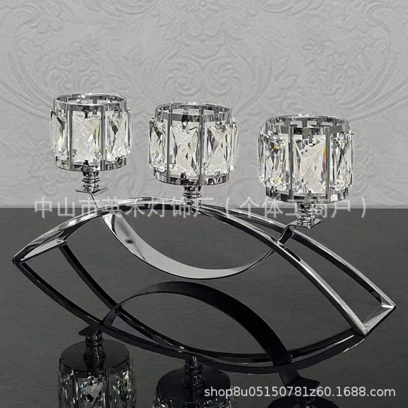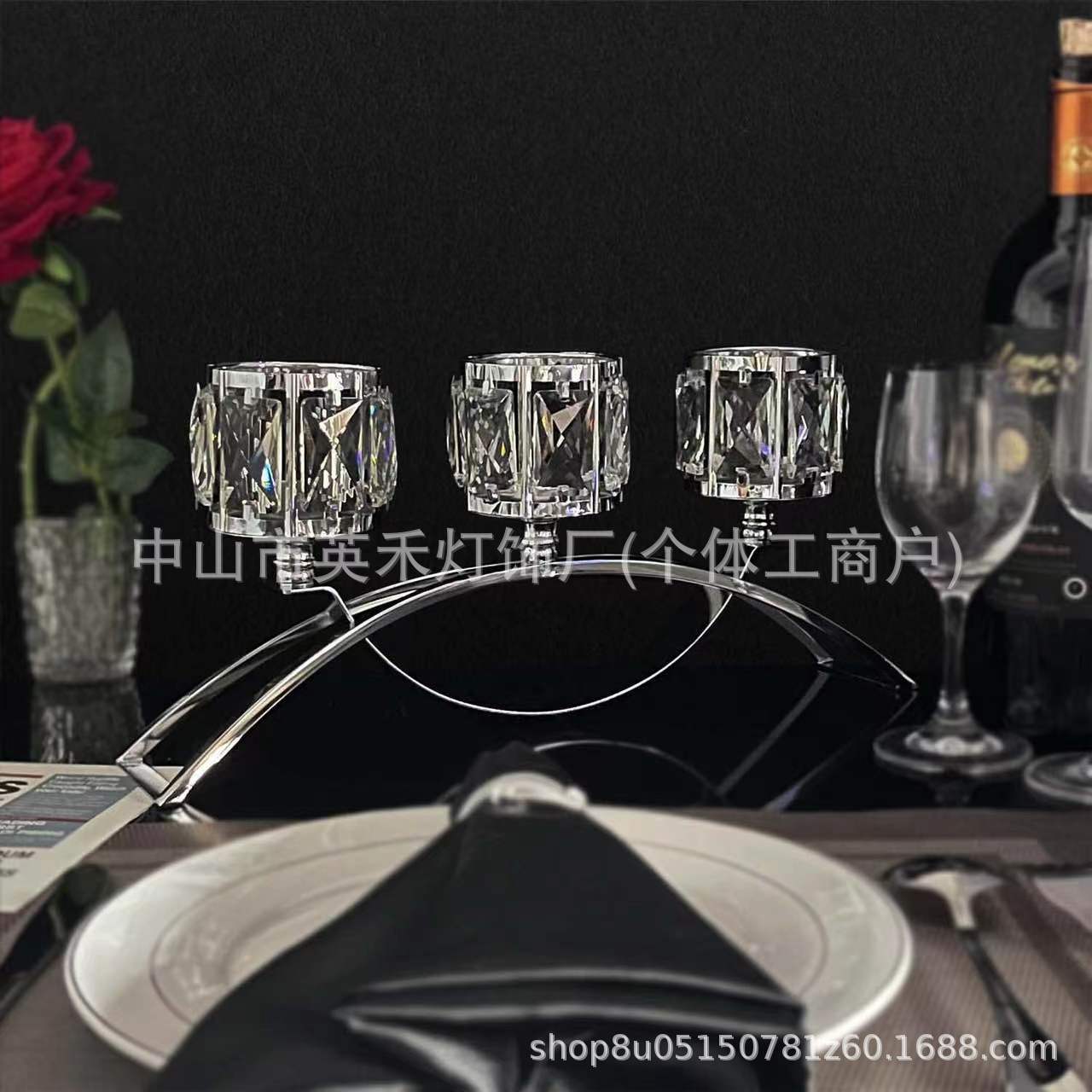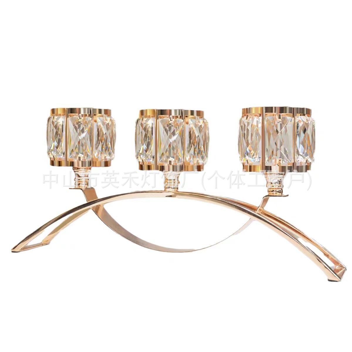 北欧铁艺电镀水晶烛台家居装饰烛光晚餐道具婚庆三头玻璃烛台架