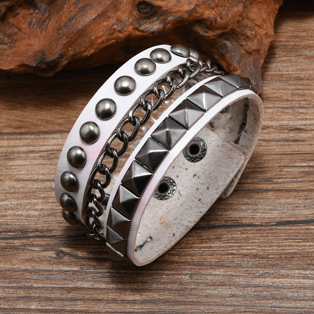 欧美跨境热卖时尚多层款皮手链朋克霸气铆钉五角星手腕带个性手环