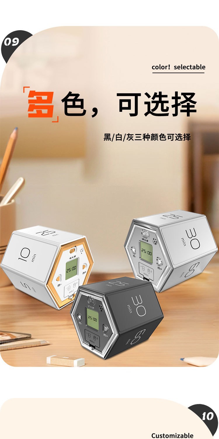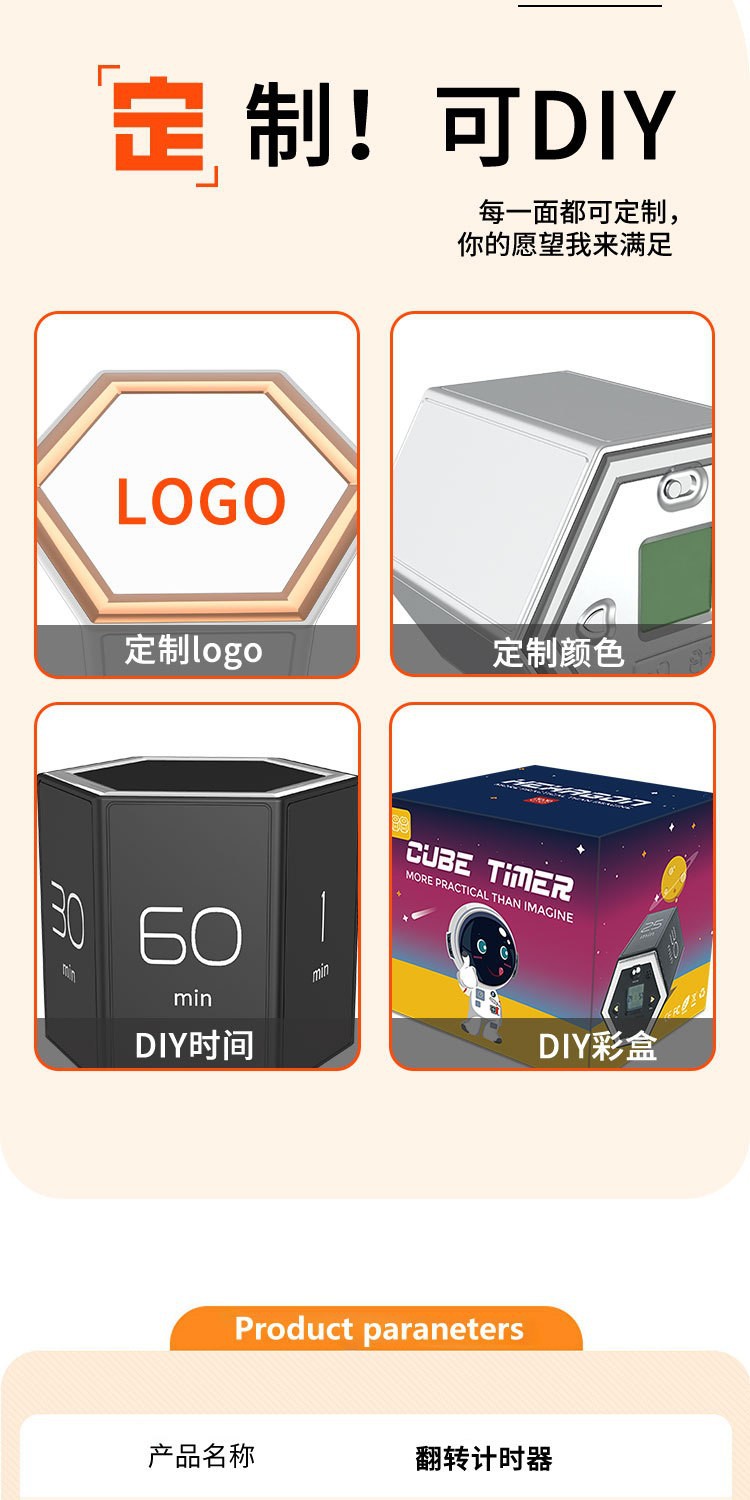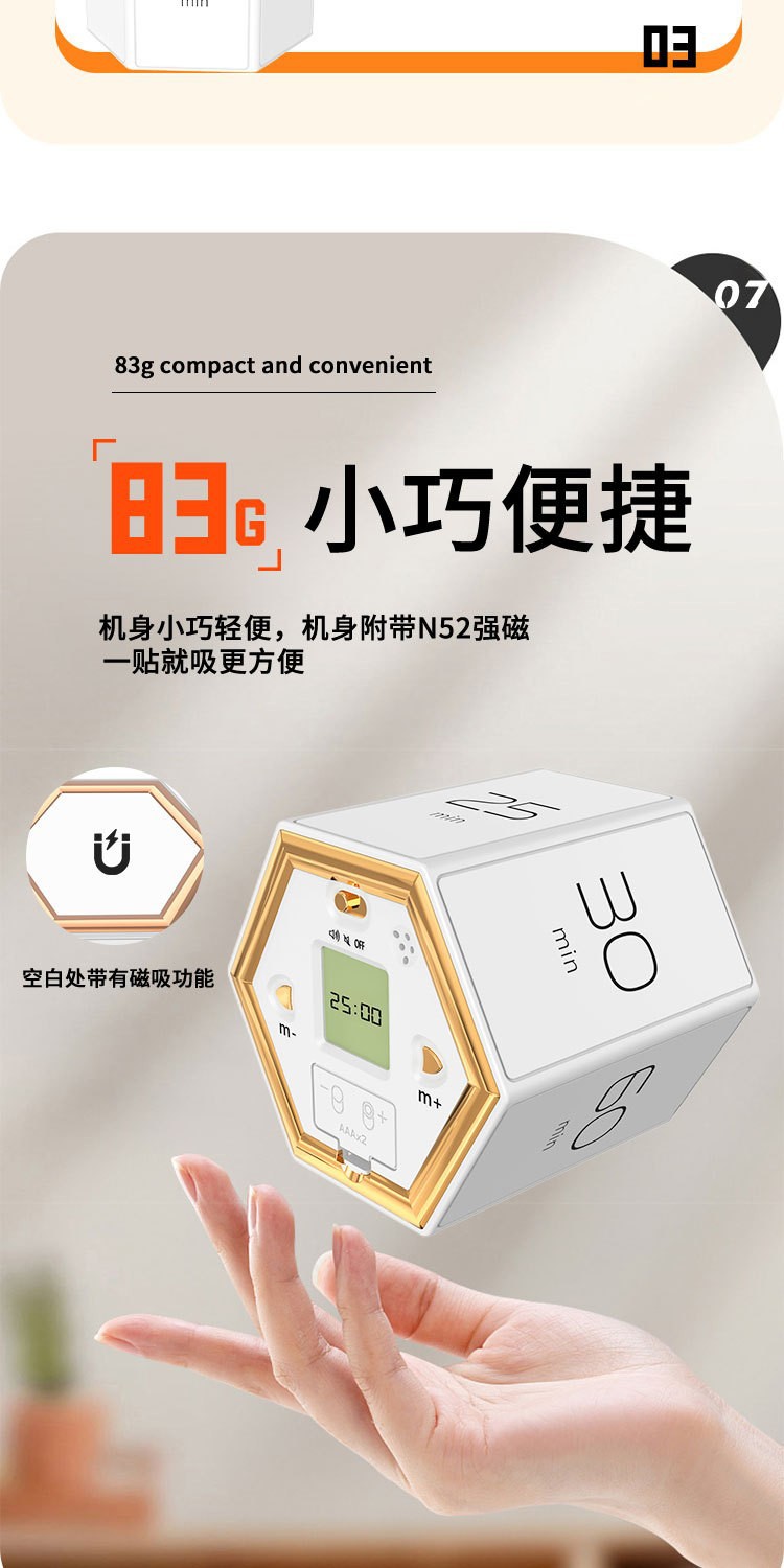 六边翻转计时器 重力计时器 厨房定时提醒器