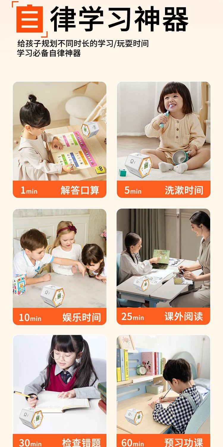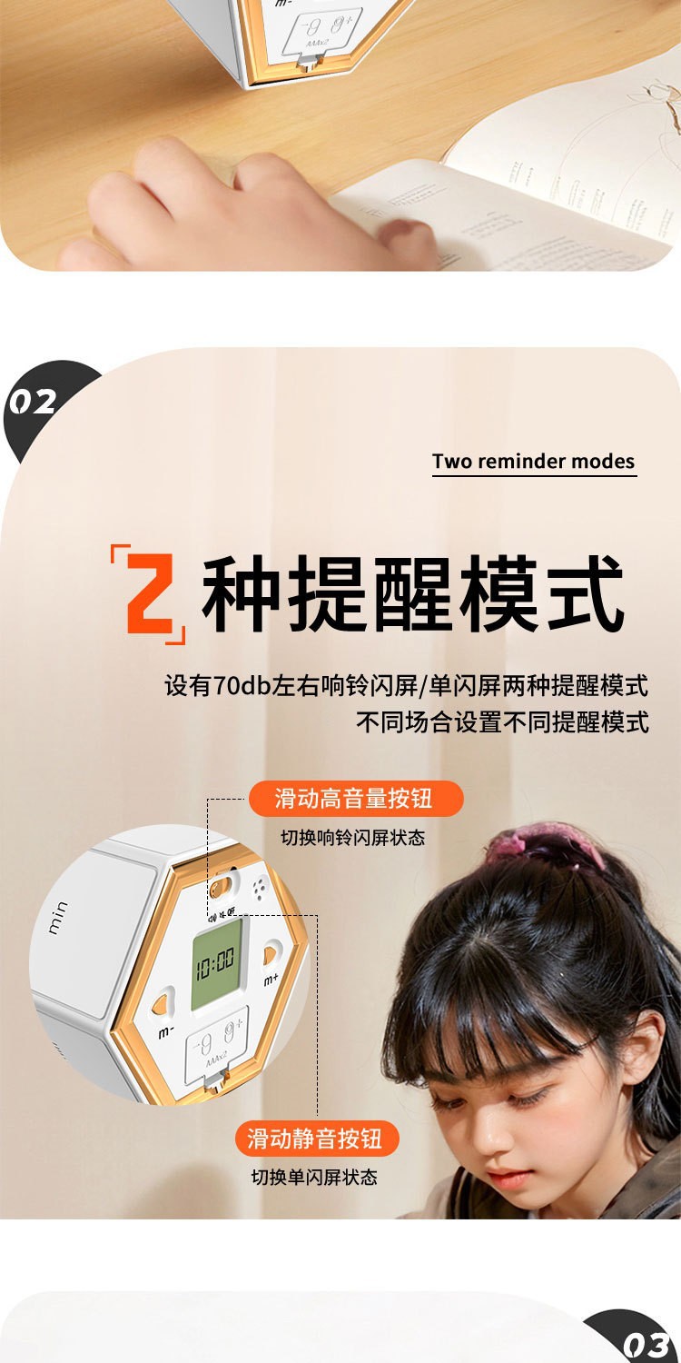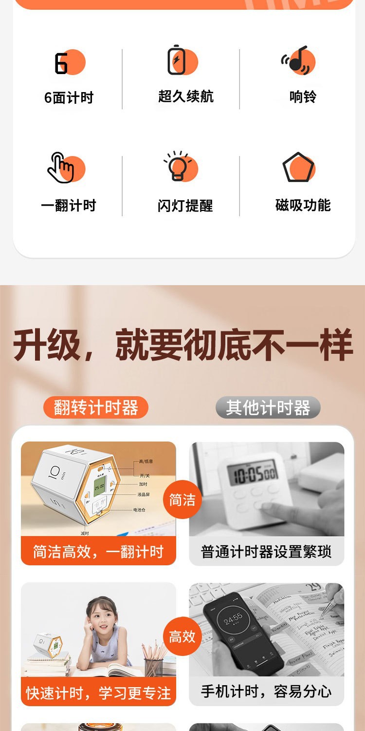 六边翻转计时器 重力计时器 厨房定时提醒器