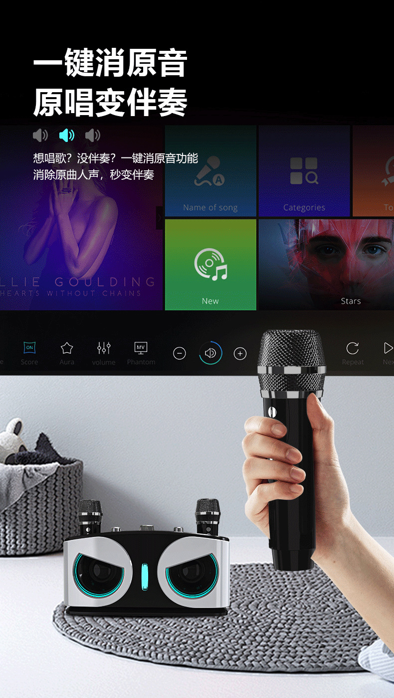 支持蓝牙连接手机,在全民K歌酷狗等唱歌;