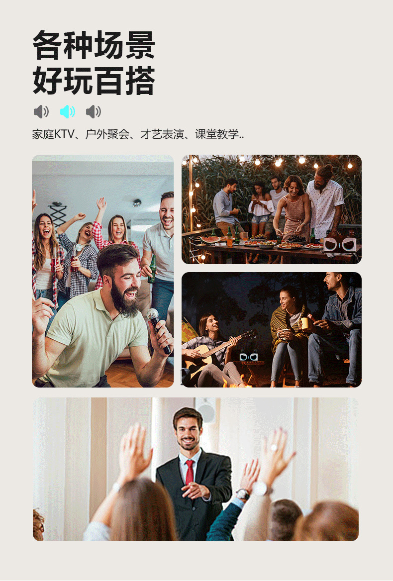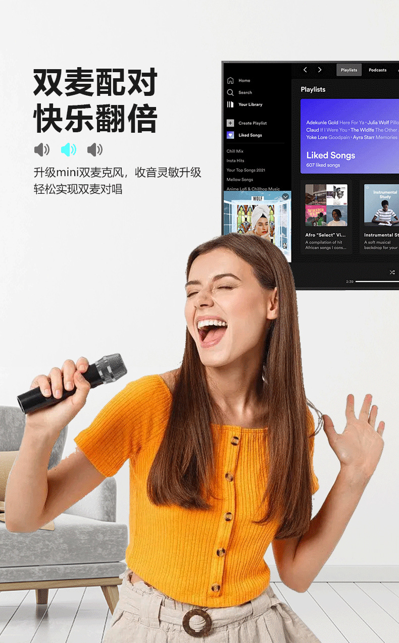 支持通过AUX音频口连接电视,在家就能唱KTV;