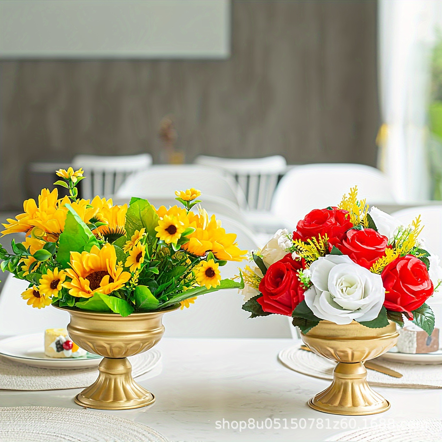 欧式金色铁艺花器婚庆餐桌摆件仿真花烛台装饰婚礼派对布置道具