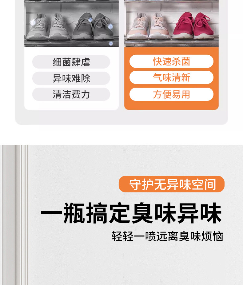 除臭除菌喷雾剂家用鞋子袜子衣柜防臭清香型去异味脚臭卫生间消毒