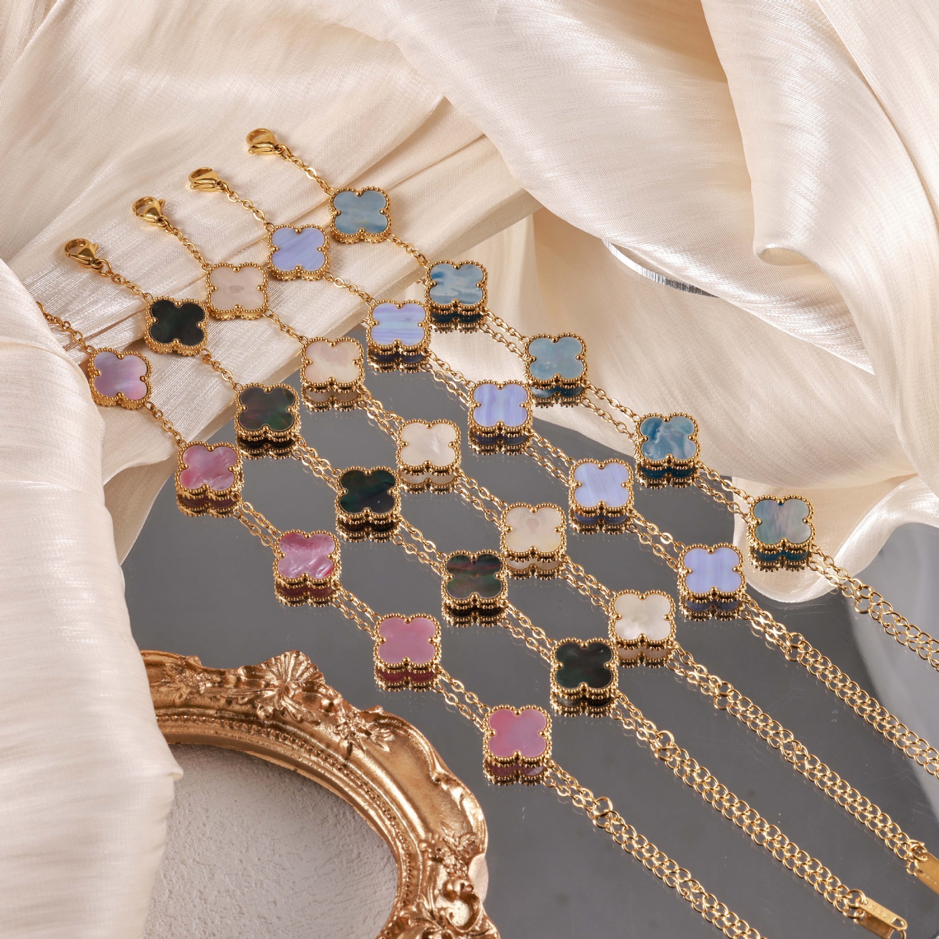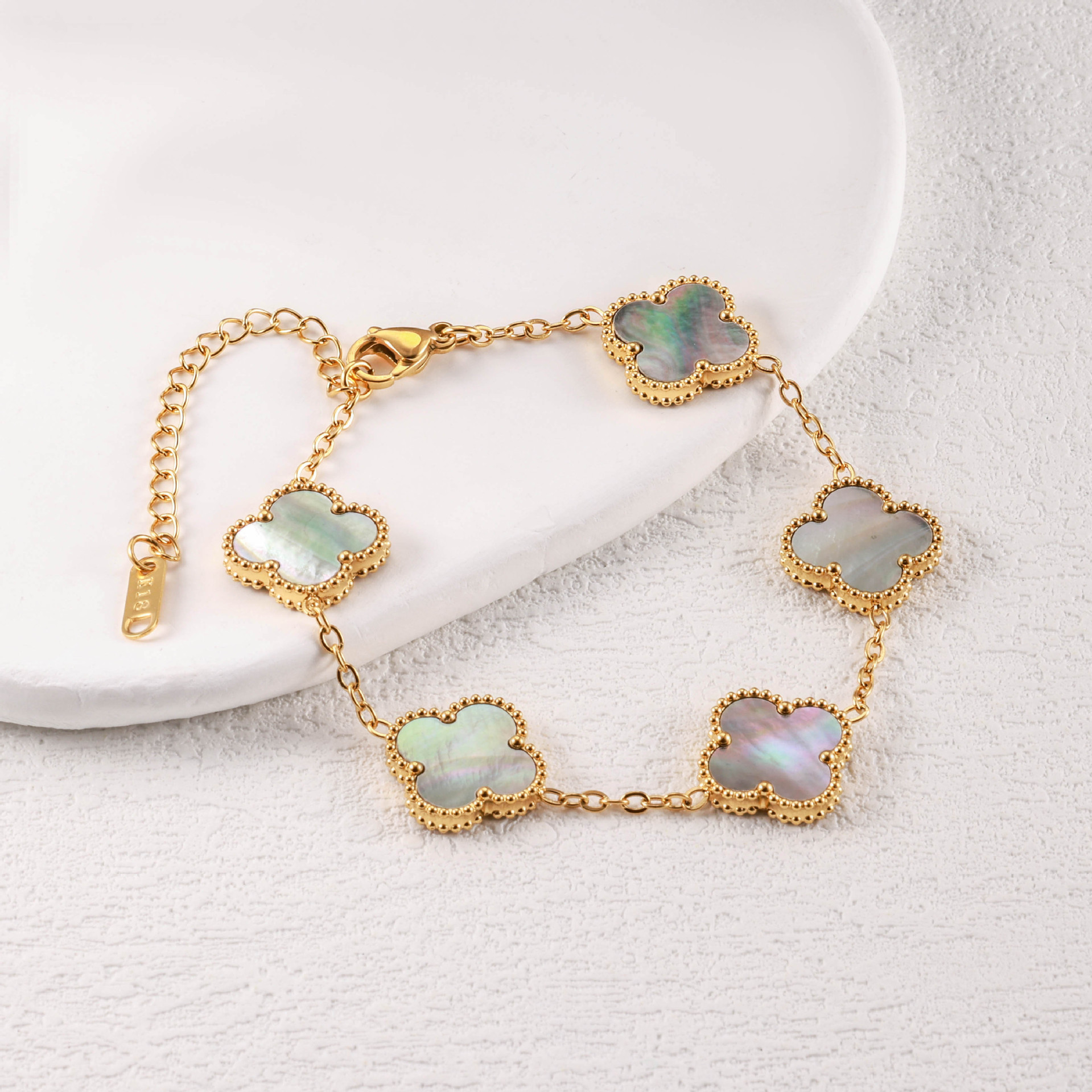 四叶草手链女款18K金镀层双面贝母轻奢高级感小众时尚饰品跨境爆,批发价,价格:13,厂家直销,四叶草手链女款18K金镀层双面贝母轻奢高级感小众时尚饰品跨境爆,免费拿样。