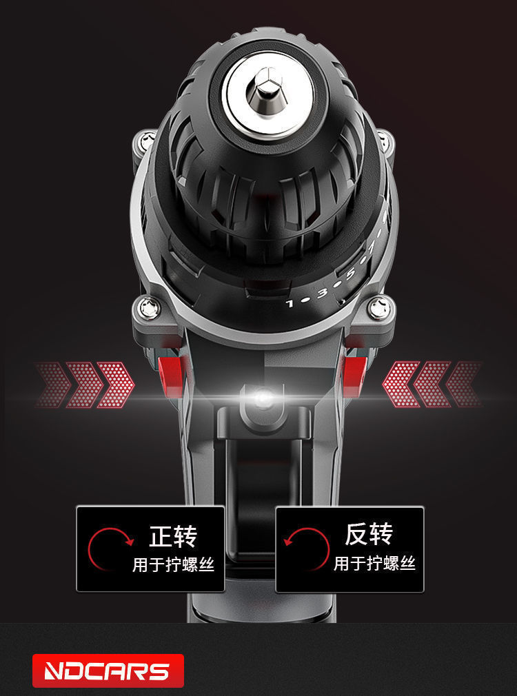 1. 强劲动力 <br> <br>• 纯铜电机 转速高 扭矩大 钻孔/拧螺丝