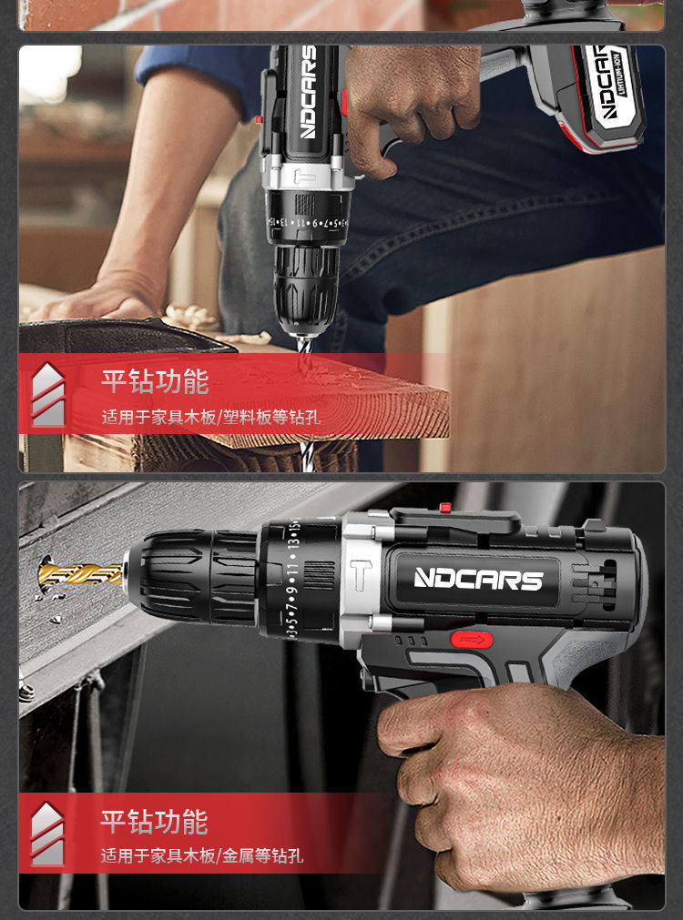 • 纯铜电机,转速高、扭矩大,钻孔/拧螺丝更省力,效率翻倍