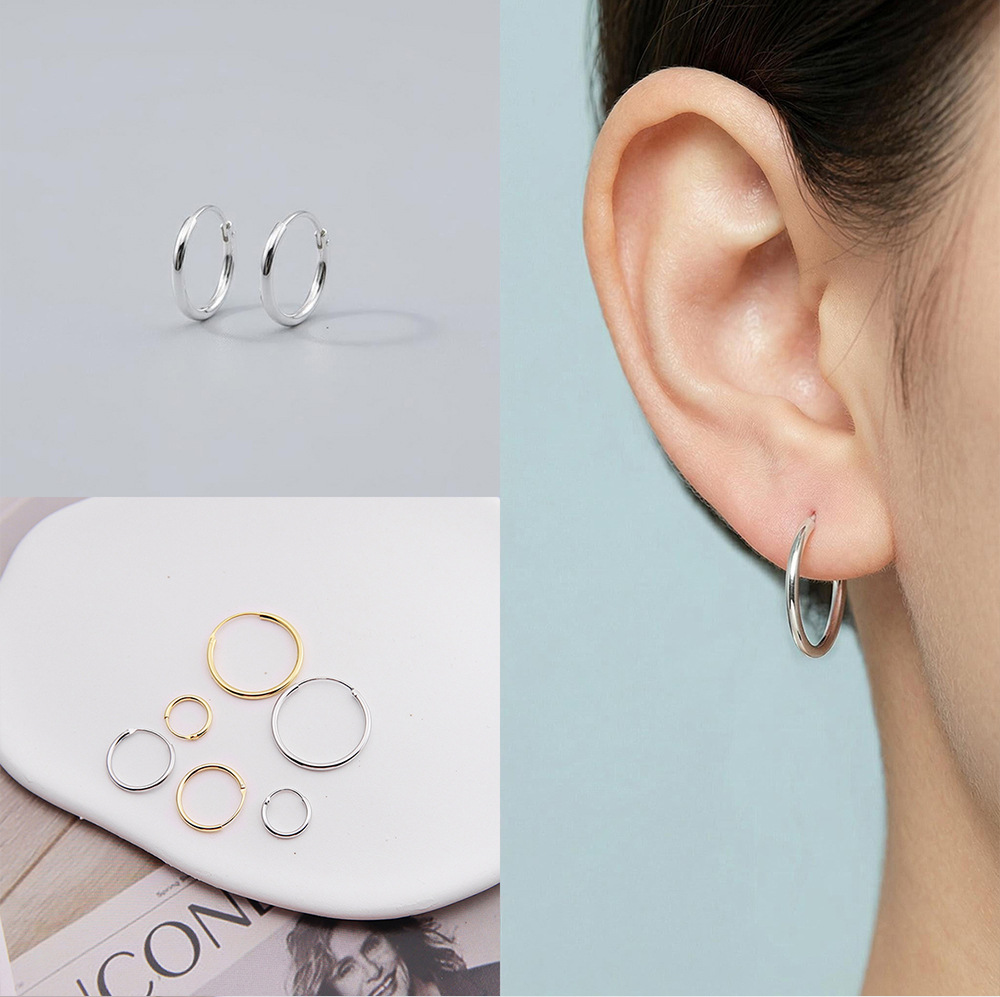 s925银大耳圈圆耳环纯银女士养耳洞百搭素银圈圈简约日常女银耳饰