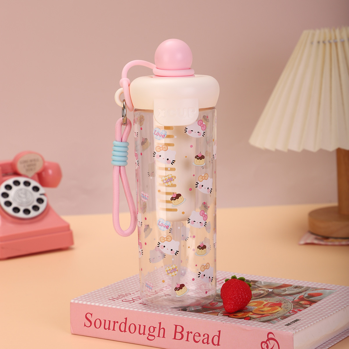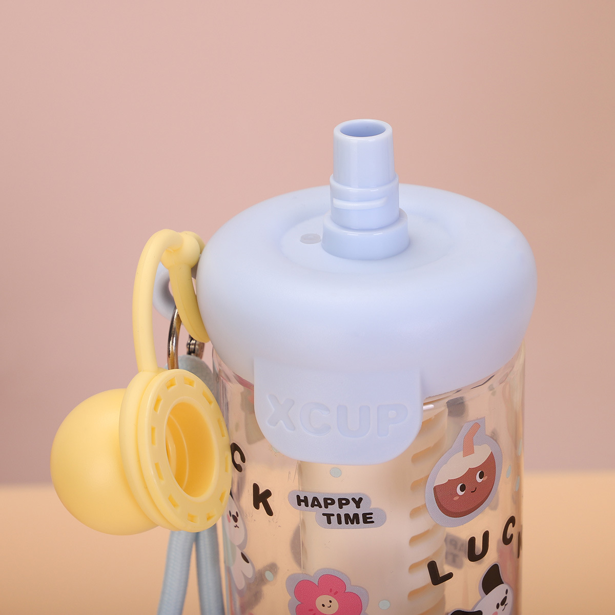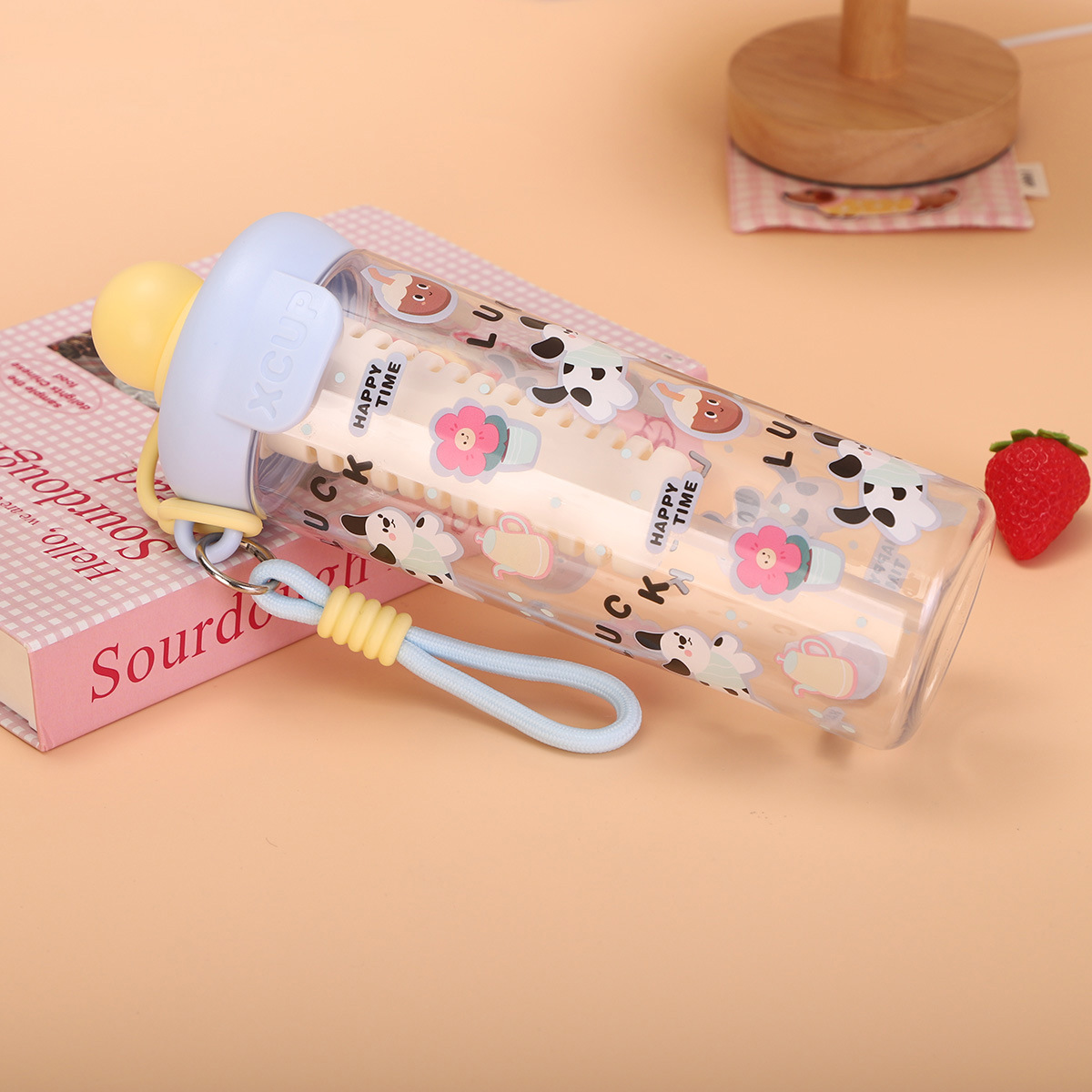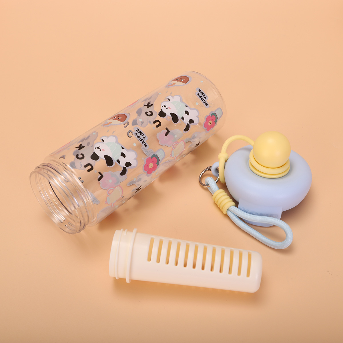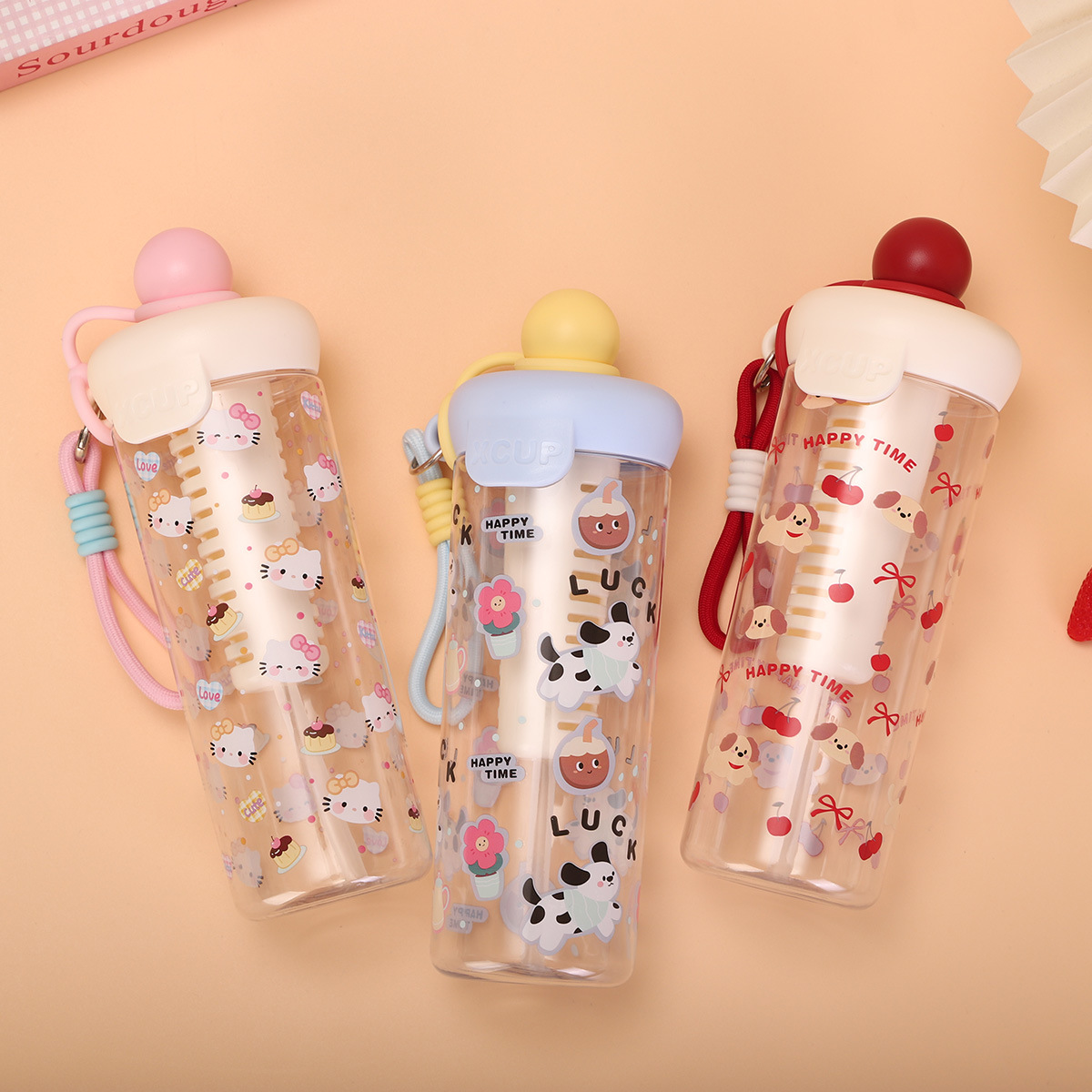新款高颜值浮球塑料杯大容量便携吸管杯卡通带提绳茶水分离杯批发