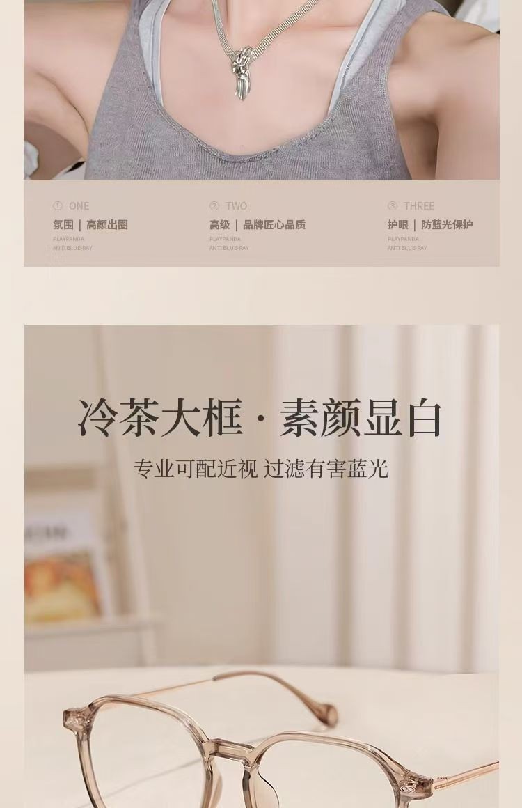 小红书同款眼镜框女款时尚简约显脸小防蓝光椰子灰近视眼镜女学生