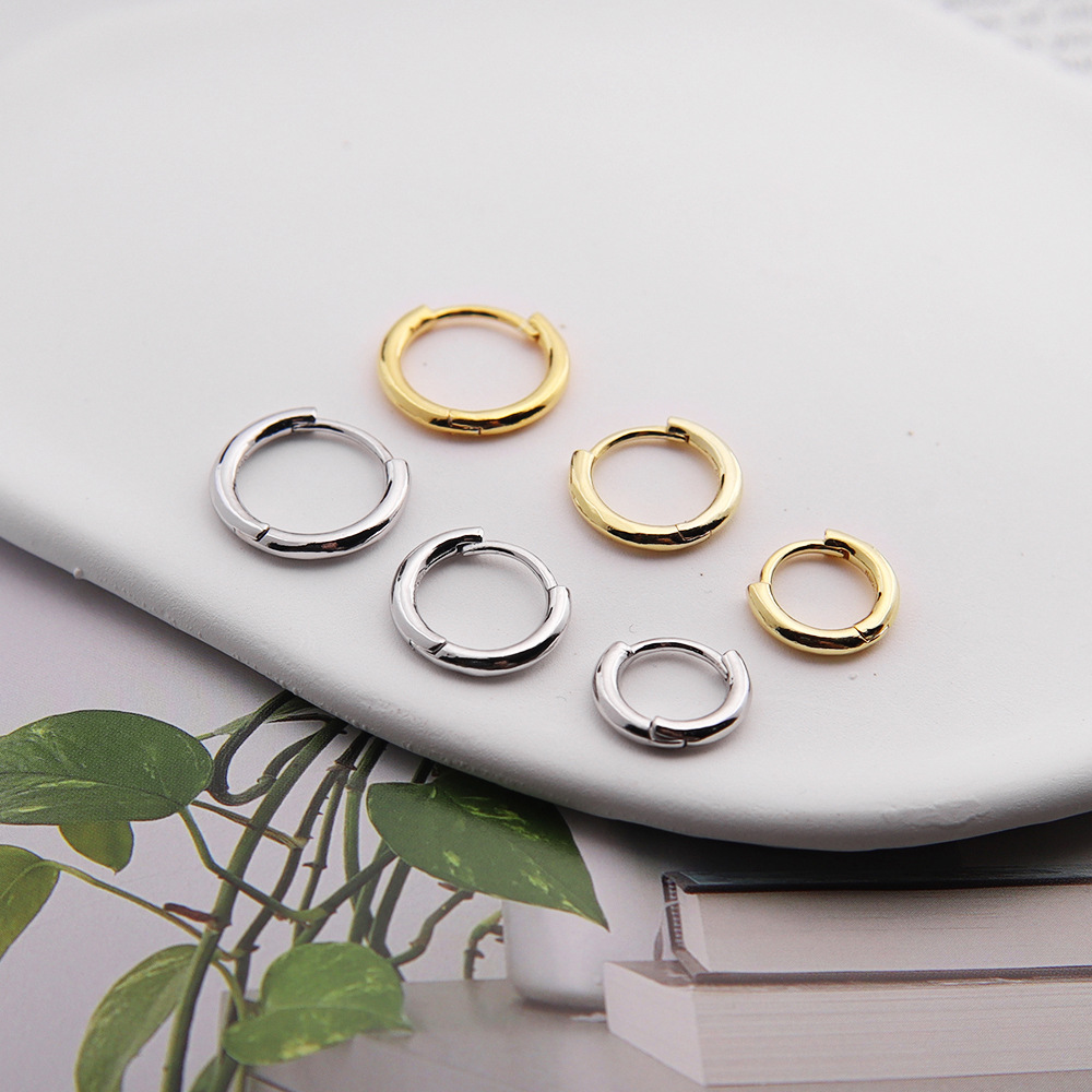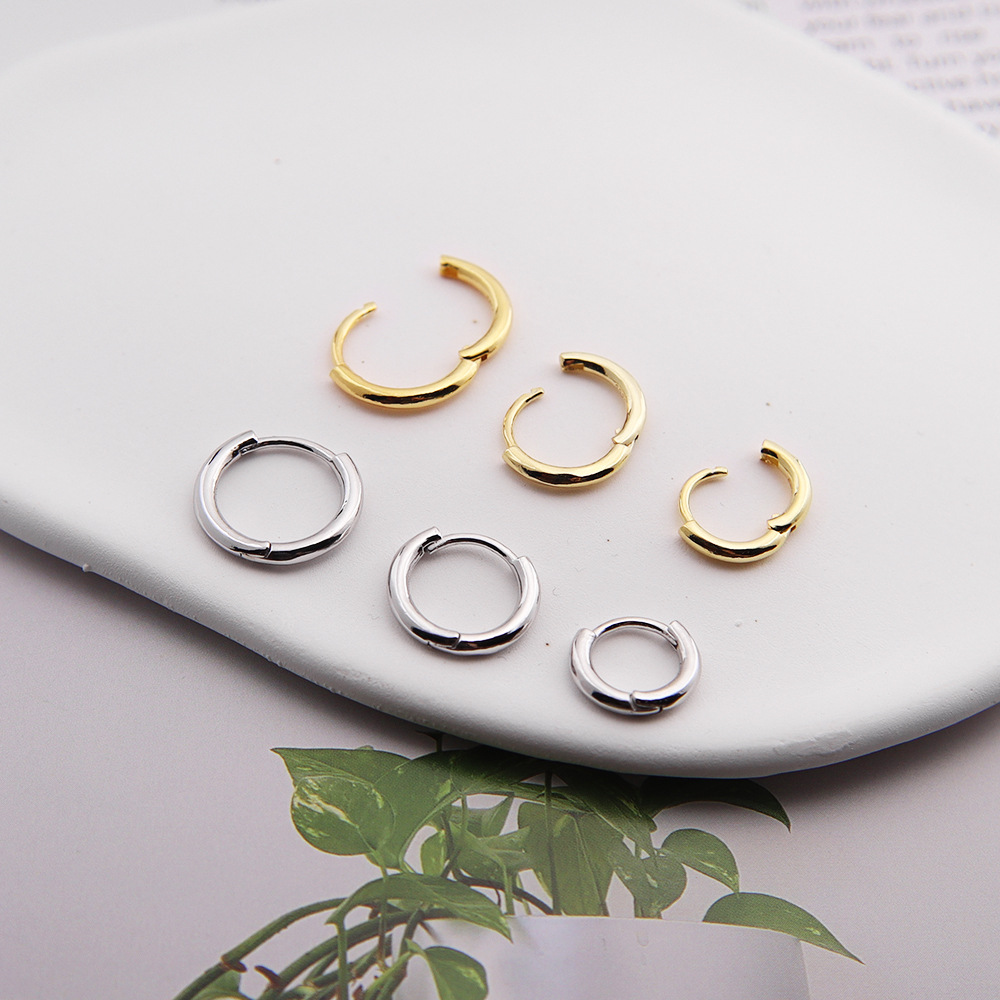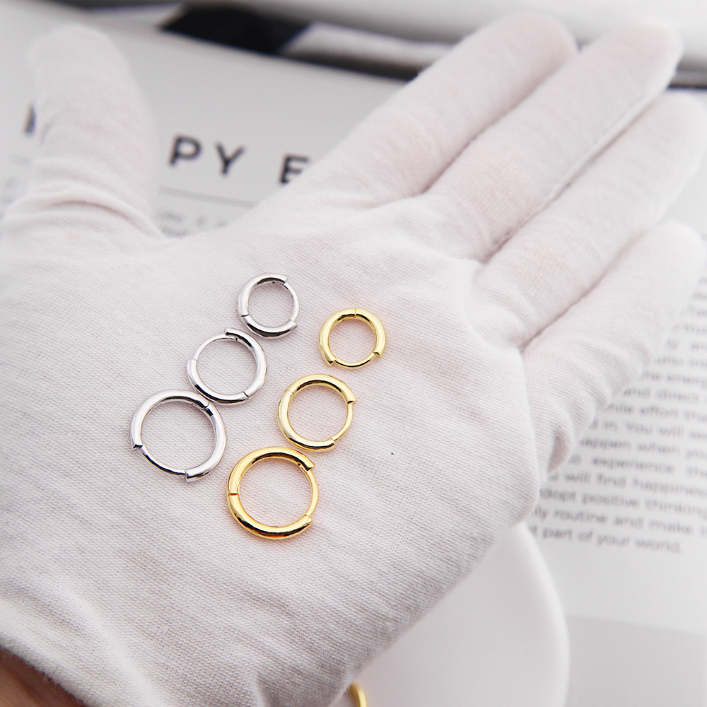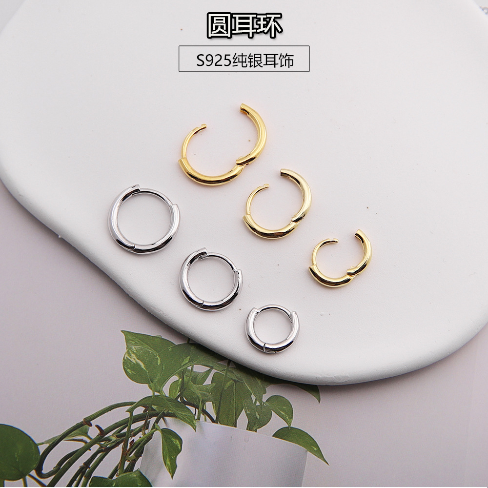 s925纯银光面耳圈养耳洞耳环送女友简约素圈银耳扣女士银耳饰批发