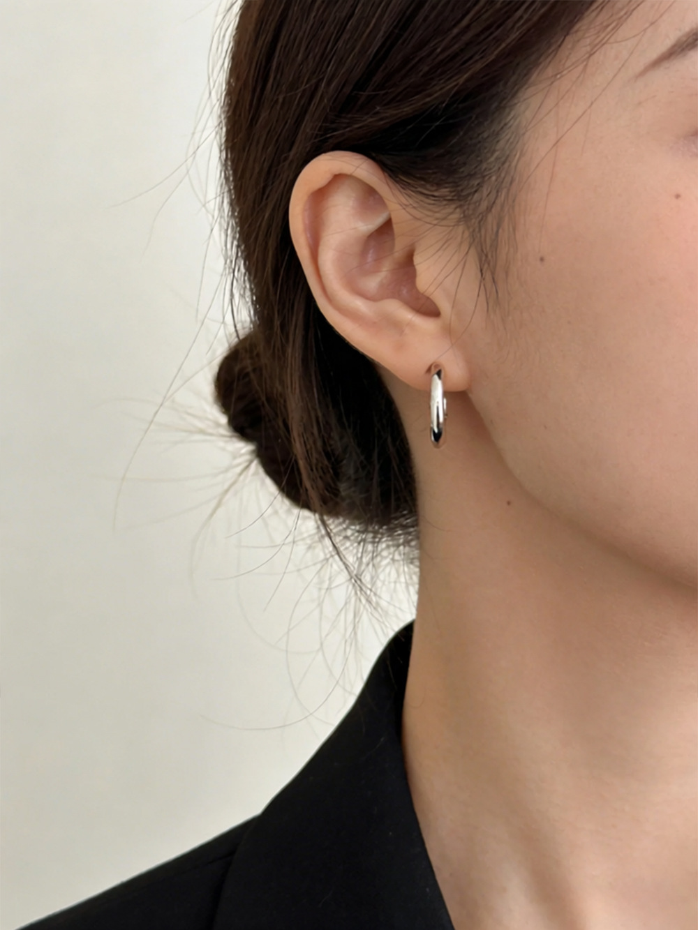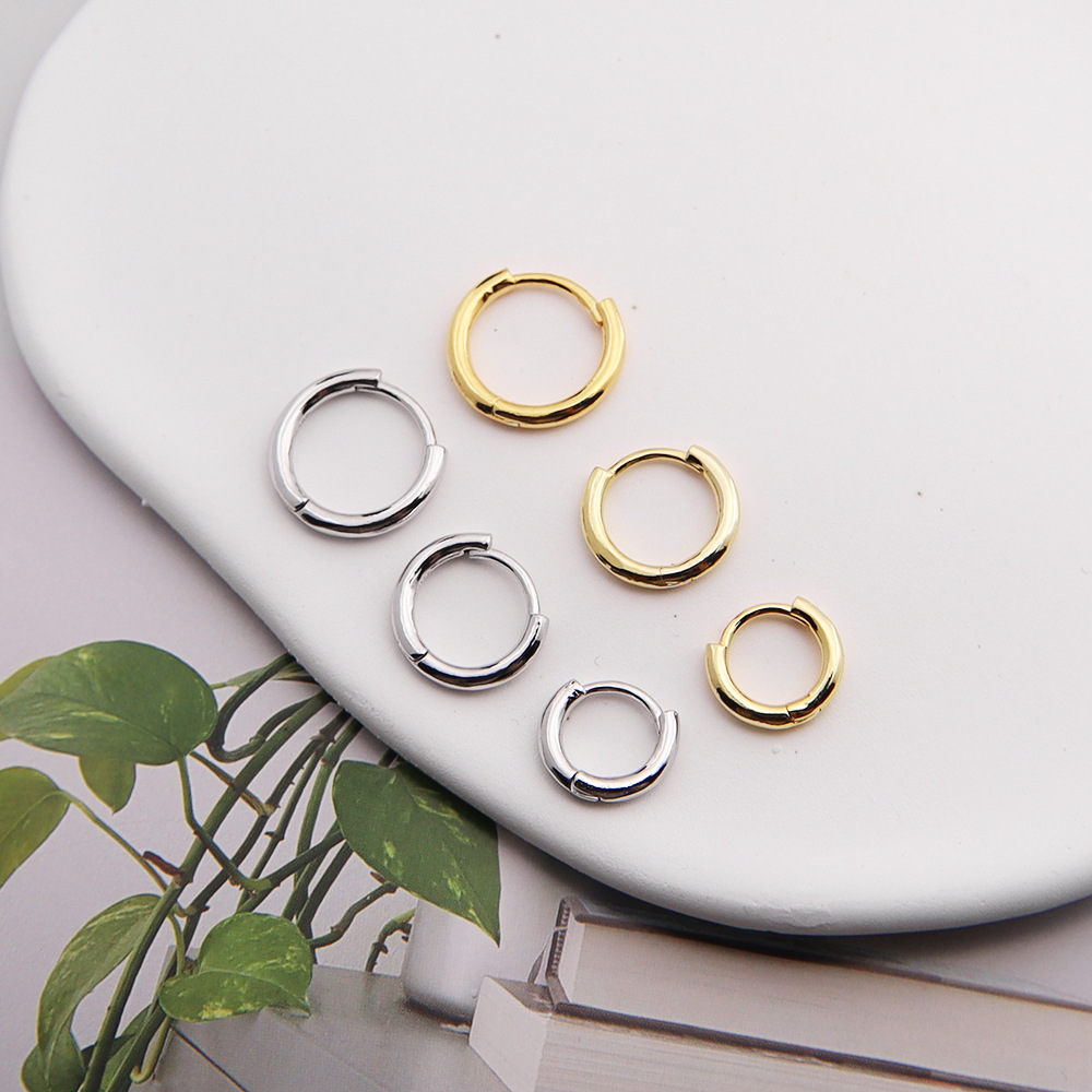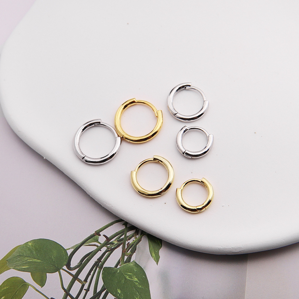 s925纯银光面耳圈养耳洞耳环送女友简约素圈银耳扣女士银耳饰批发