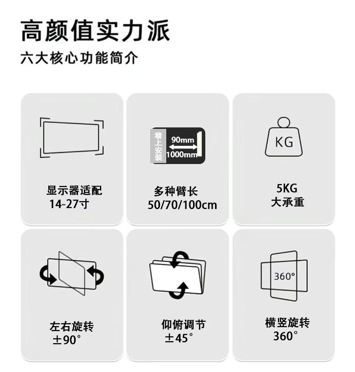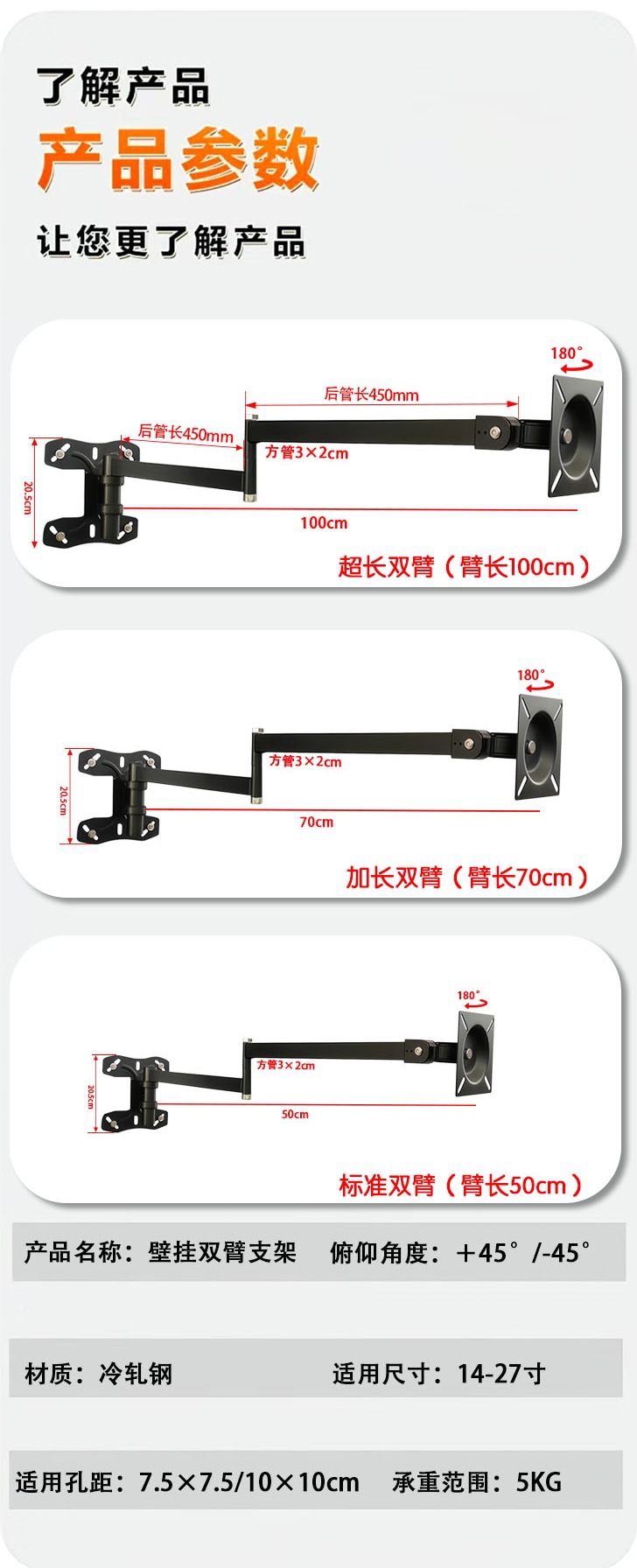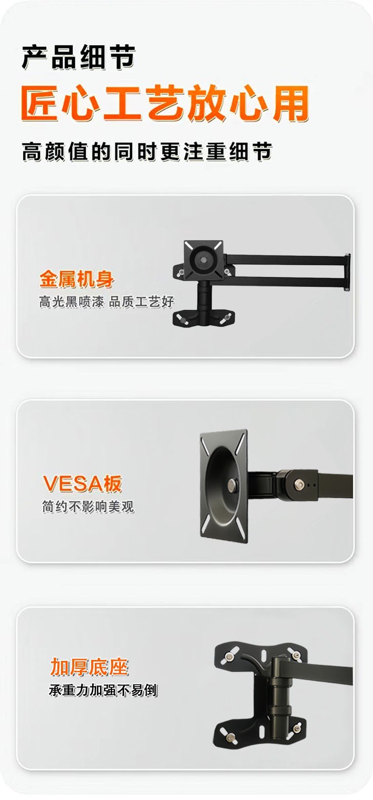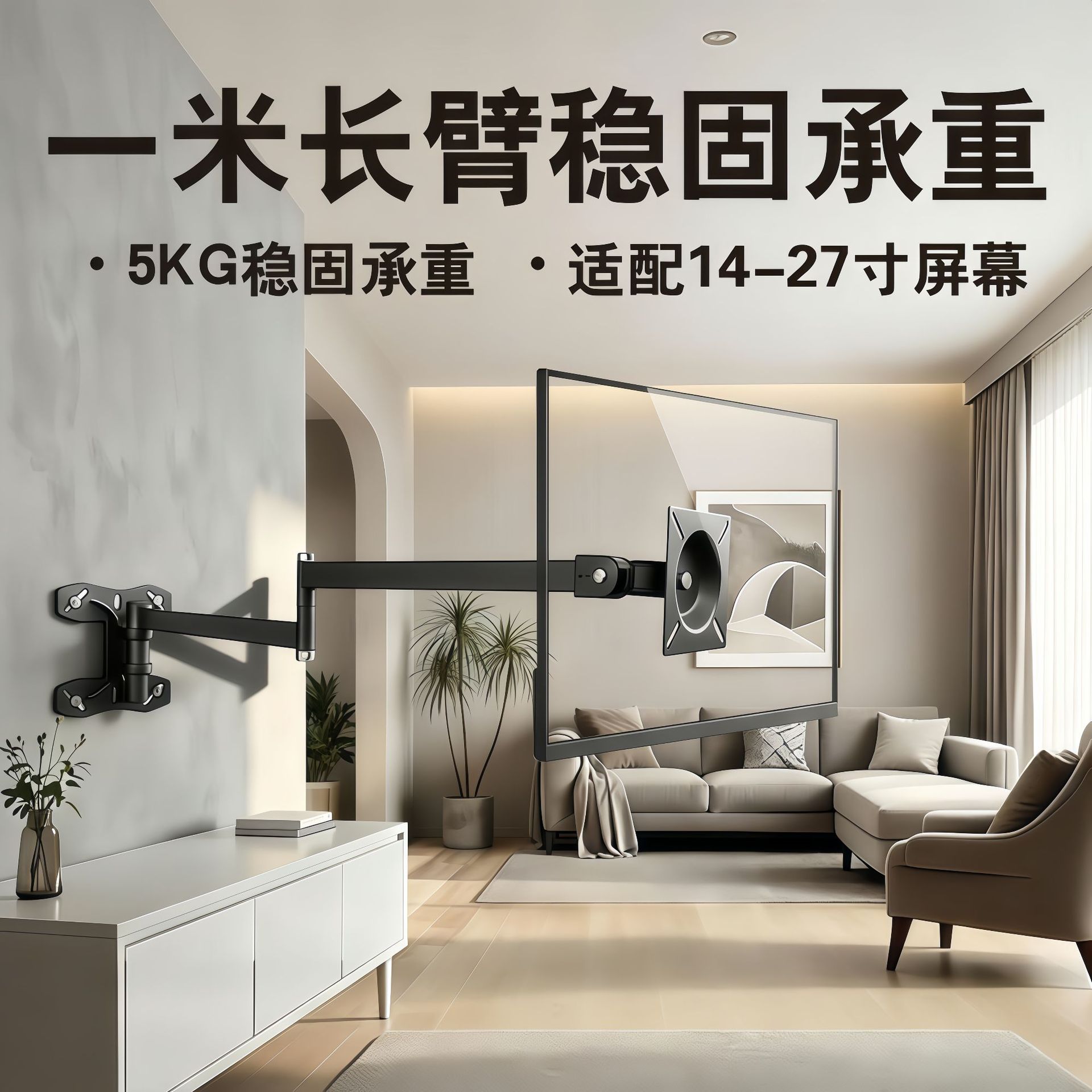 显示器通用加长臂架电脑液晶电视机旋转壁挂伸缩架支架12-27英寸