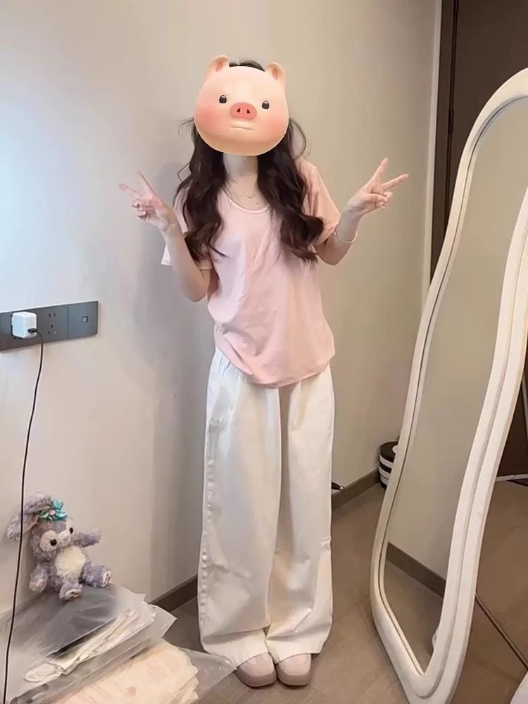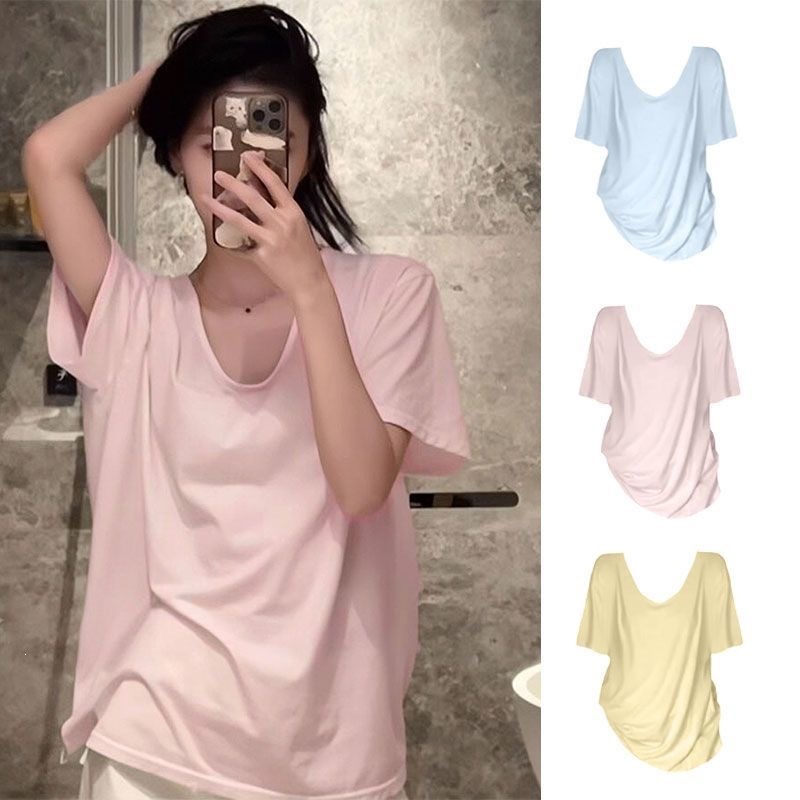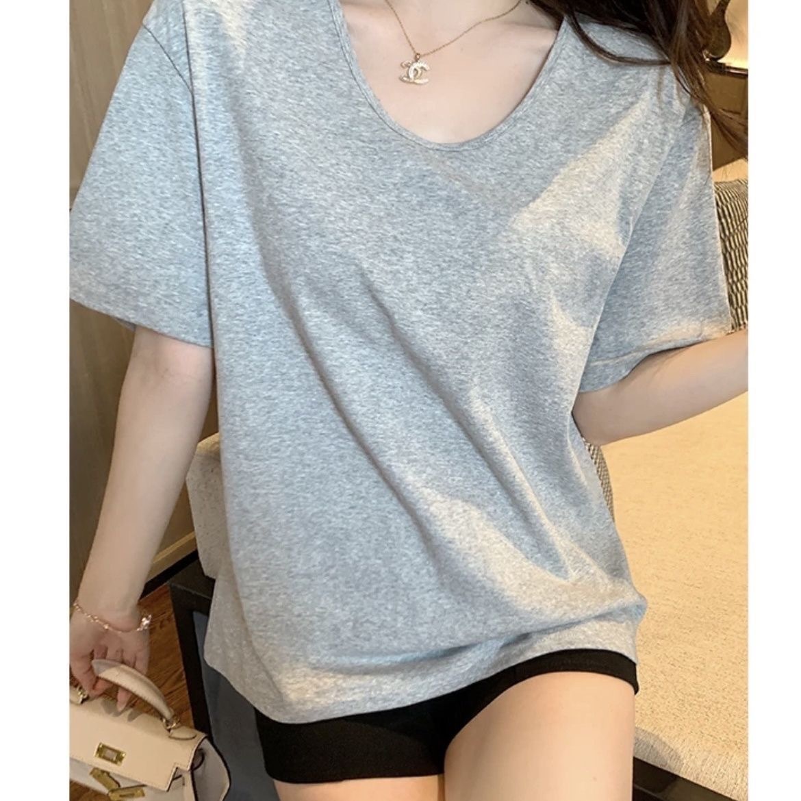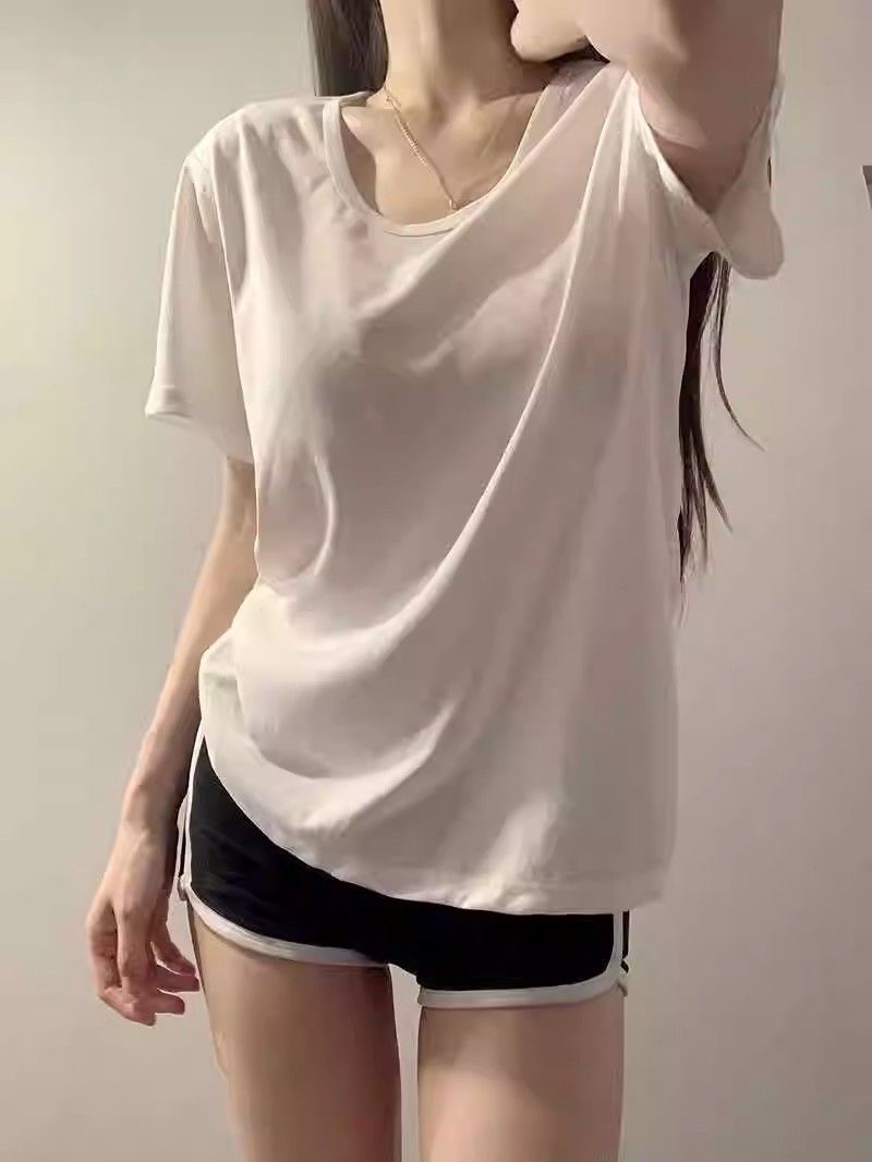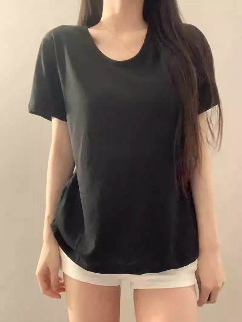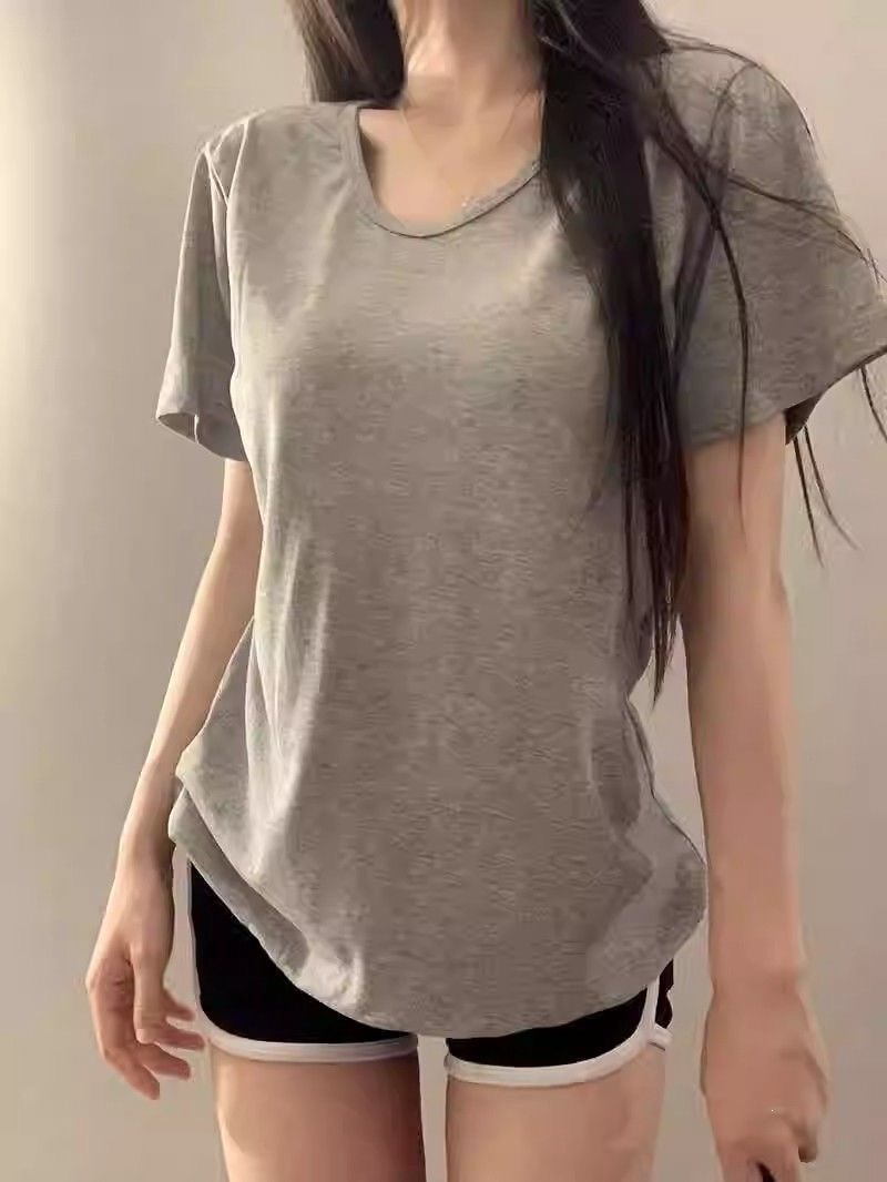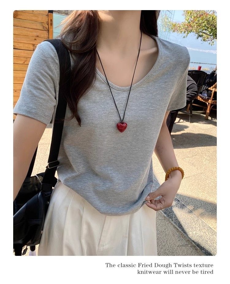 230克冰丝罗纹日系百搭韩版时尚宽松简约纯色v领短袖t恤上衣女潮