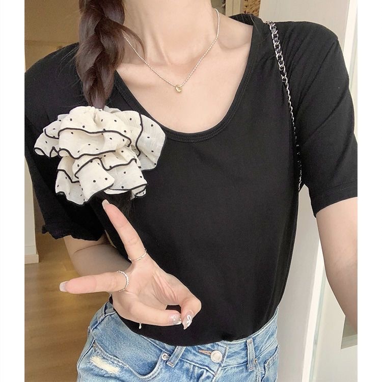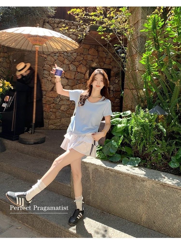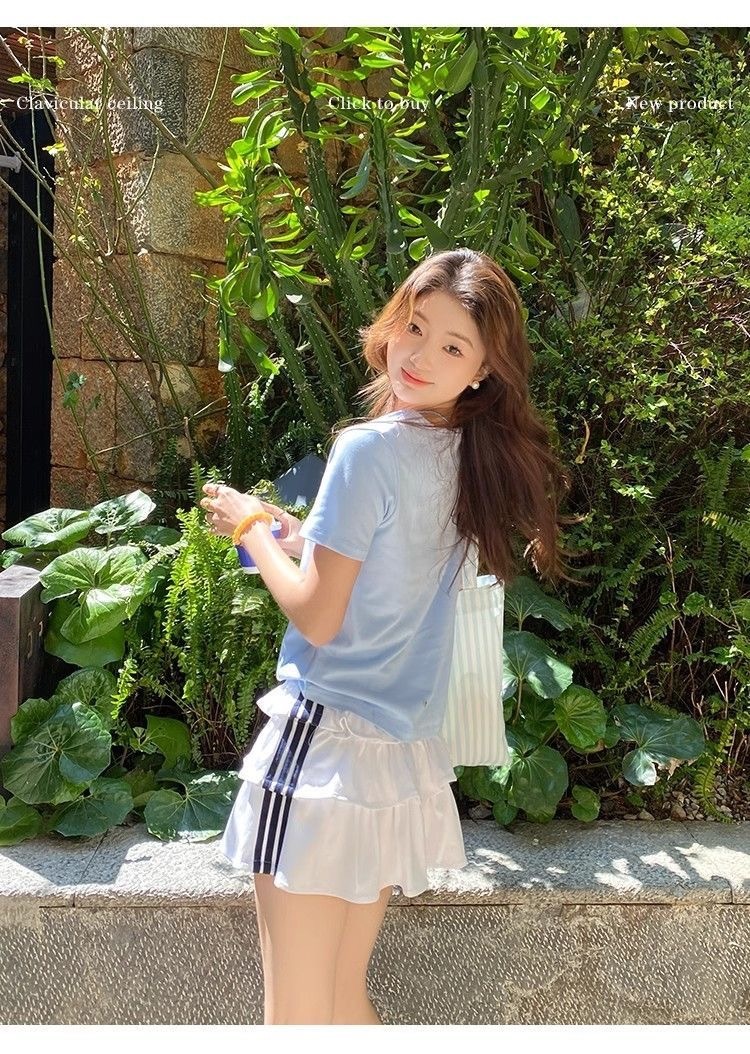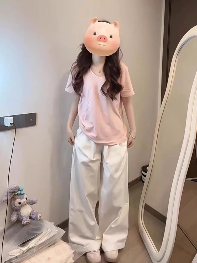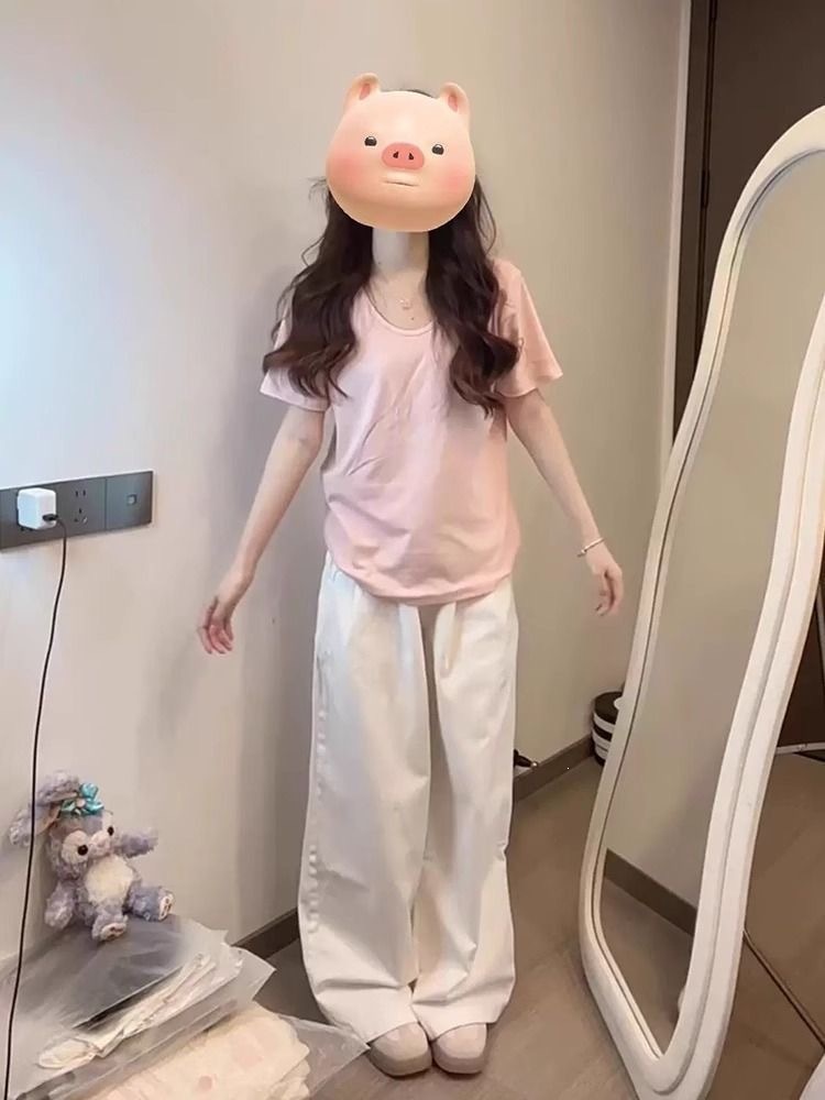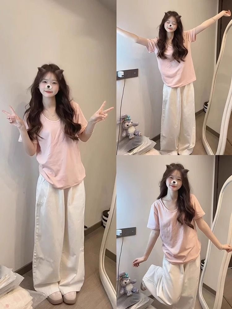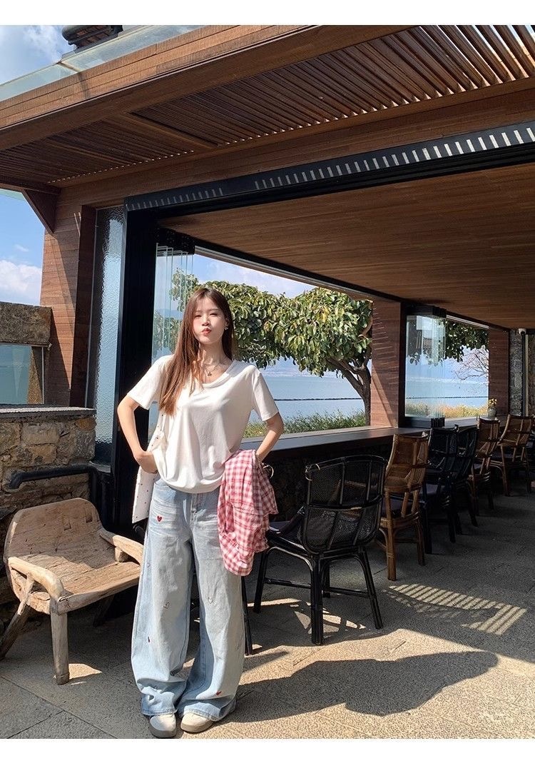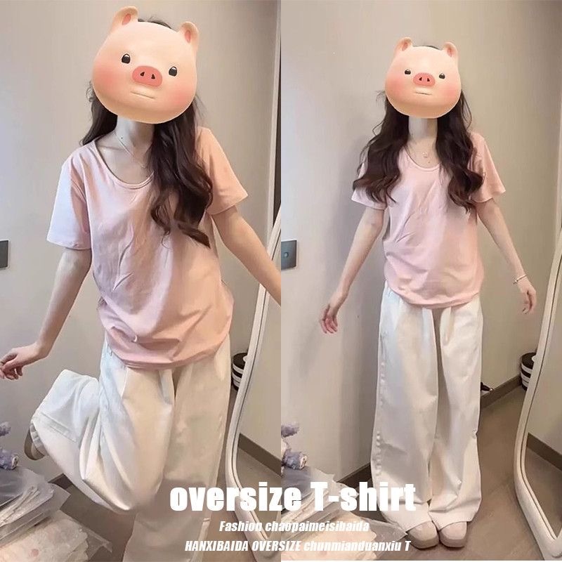 230克冰丝罗纹日系百搭韩版时尚宽松简约纯色v领短袖t恤上衣女潮