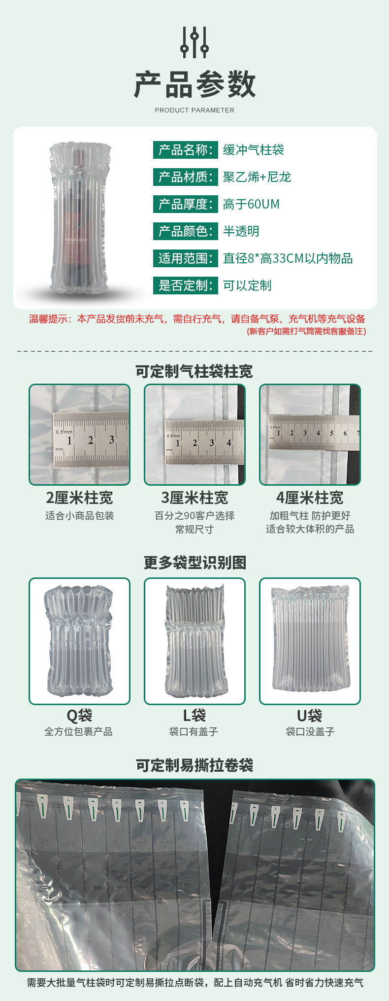 防摔红酒气柱袋加厚气泡柱缓冲袋防摔充气柱防震充气袋红酒气柱袋