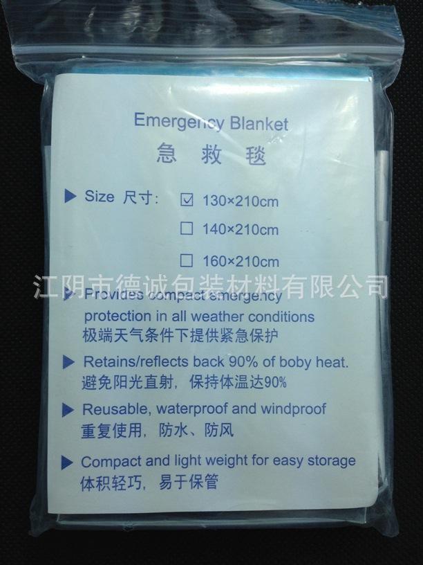 定制急用救生毯PET保温毯野外生存保温用品锡纸便携式保温毯,批发价,价格:4,厂家直销,定制急用救生毯PET保温毯野外生存保温用品锡纸便携式保温毯,免费拿样。