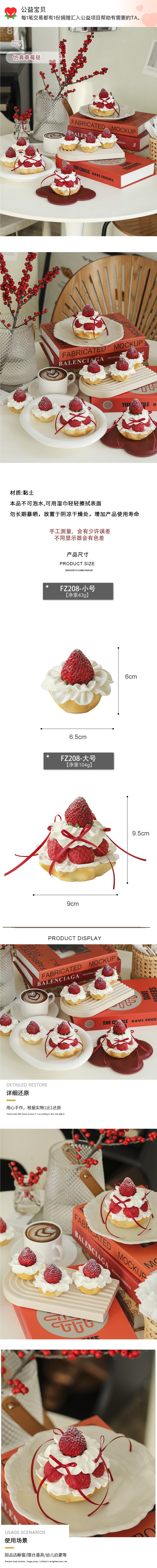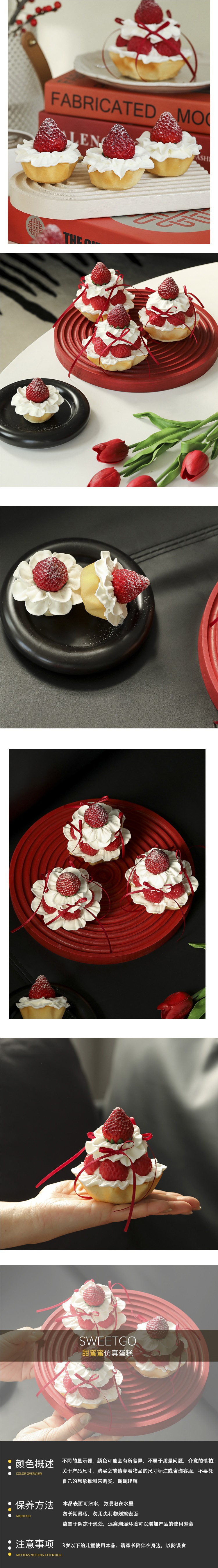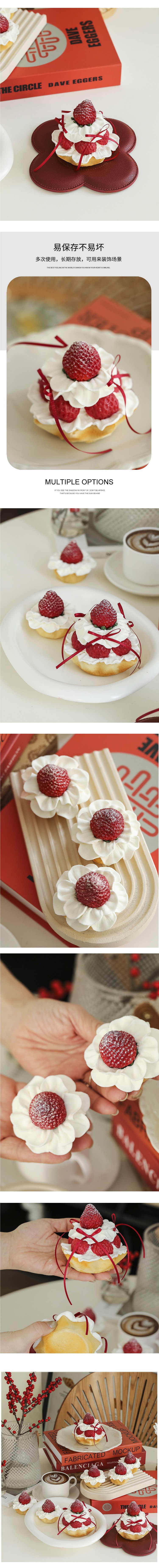 推荐理由:颜值党必入!新款仿真奶油蛋糕模型 草莓水果挞摆件,还原度超高,奶油质感细腻、草莓鲜活饱满,视觉甜度拉满~ 无毒无味材质安全,不易变形掉色。橱窗陈列吸睛引流,居家装饰增添温馨氛围,更是创意拍照神器,
