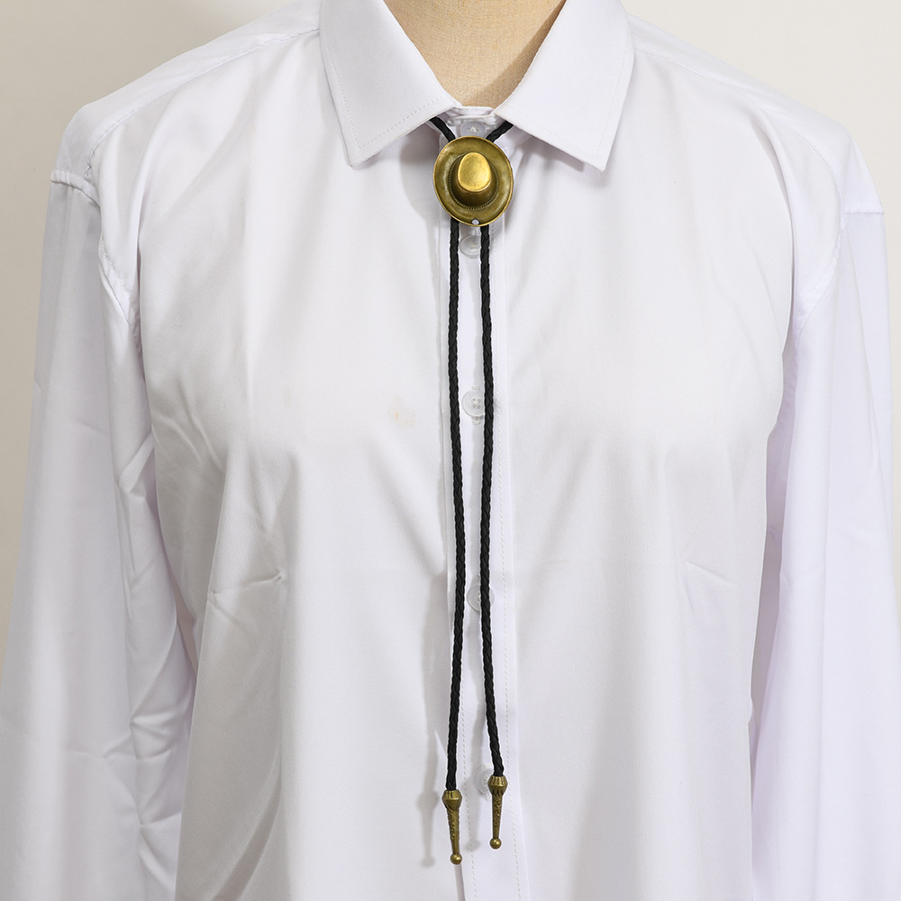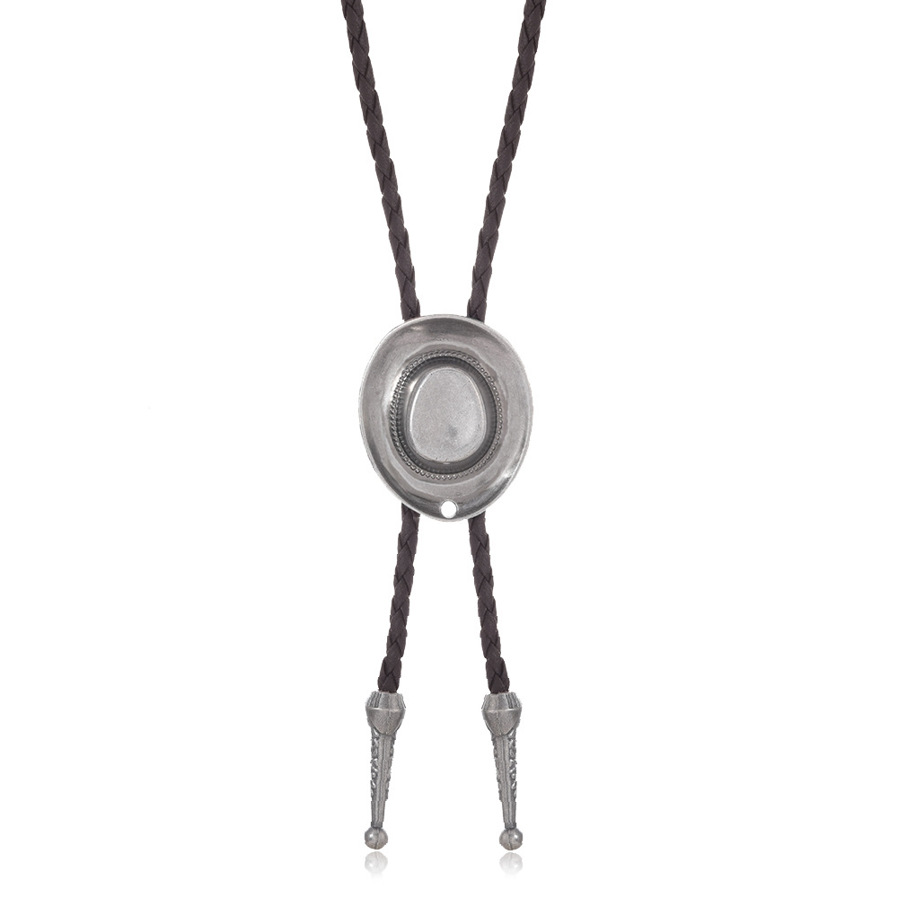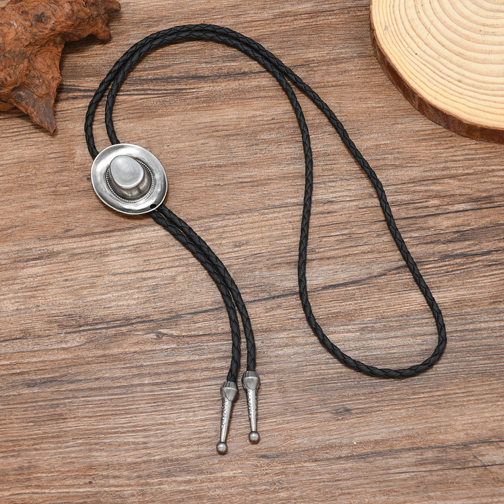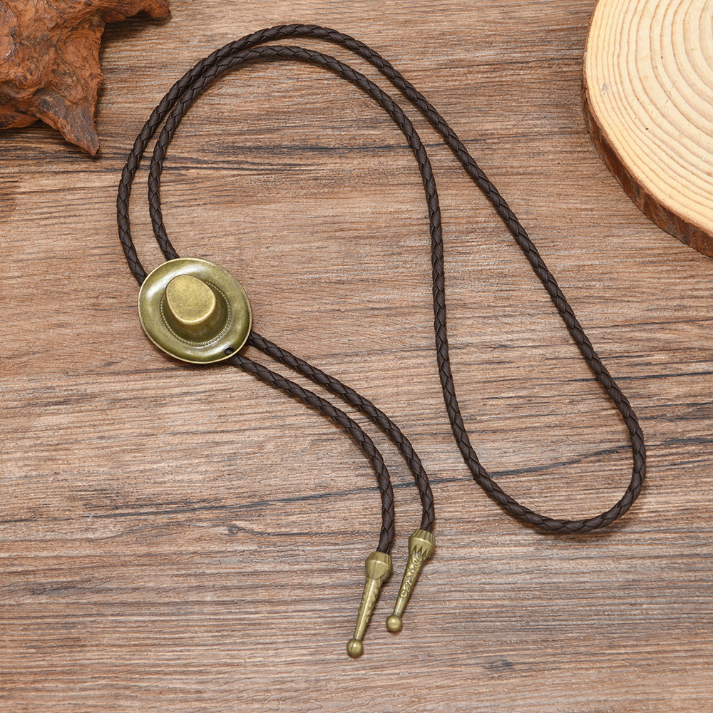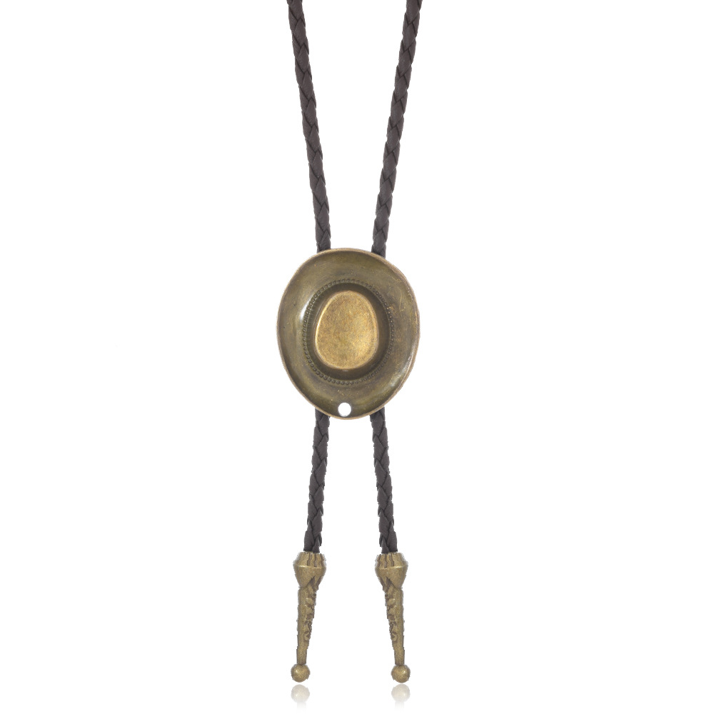 复古西部风波洛领结男女通用编织皮绳项链合金牛仔帽吊坠配饰