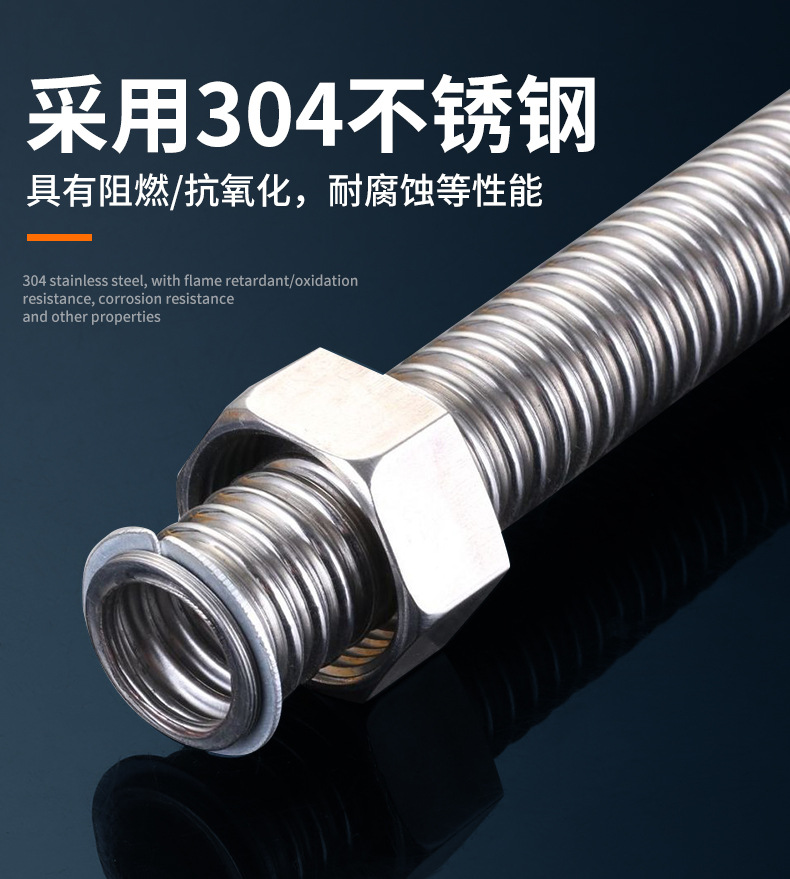 4分304不锈钢热水器波纹管太阳能冷热水进水管金属软管空调连接管