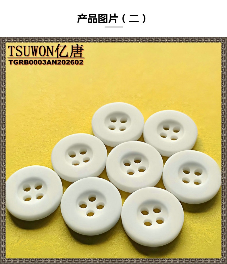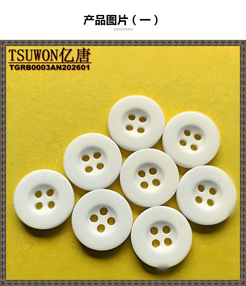 【TGRB0003AN】规格齐全白色无光宽边四眼纽扣树脂纽扣百搭纽扣
