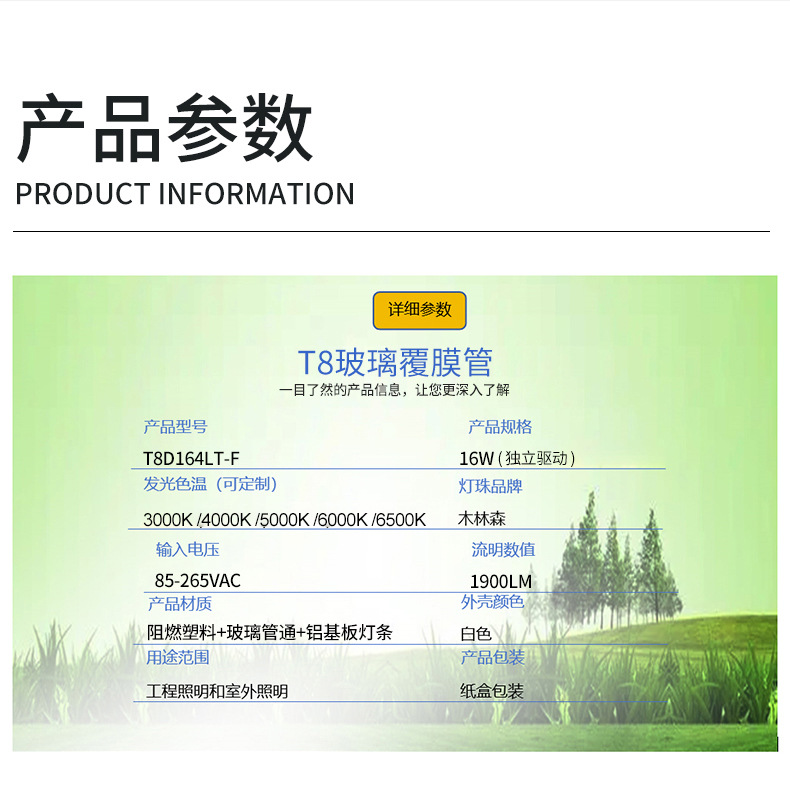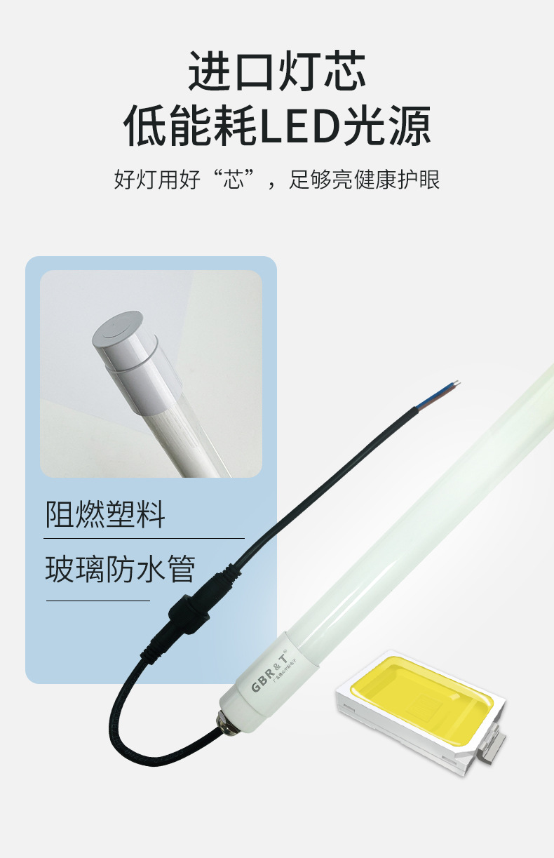 LED日光灯管T8玻璃灯管消防应急灯管超市车库灯户外防水玻璃灯管