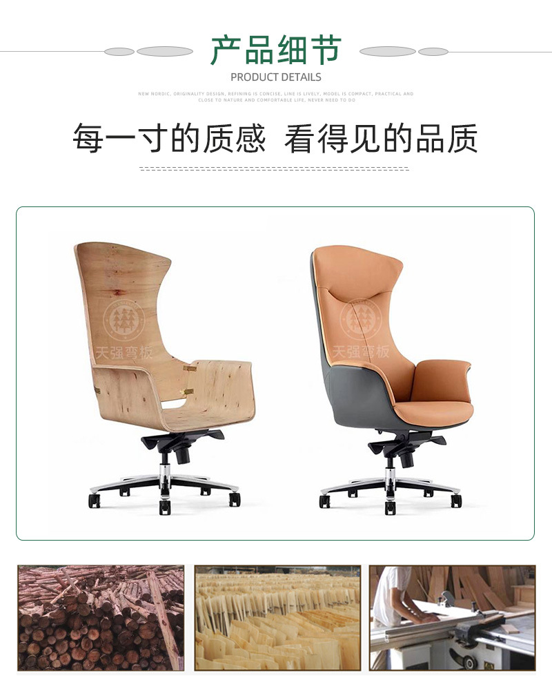 TQ-4001办公高端极简舒适轻奢大板靠背弯板曲 胶合板电脑椅老板椅
