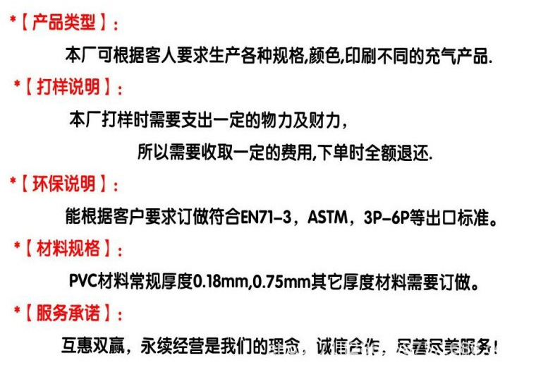 1、充气要求:充气量一般为80%左右适宜,可以延长产品的寿命,请勿充气过足。