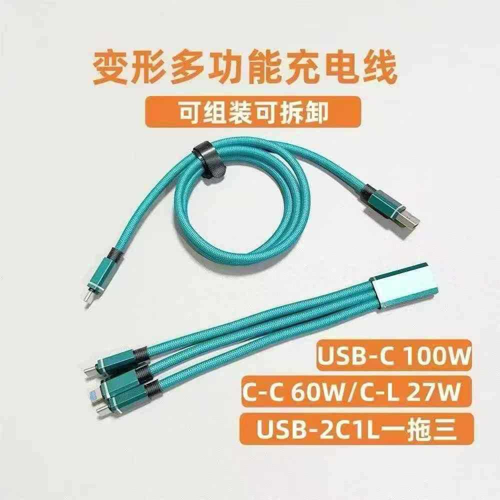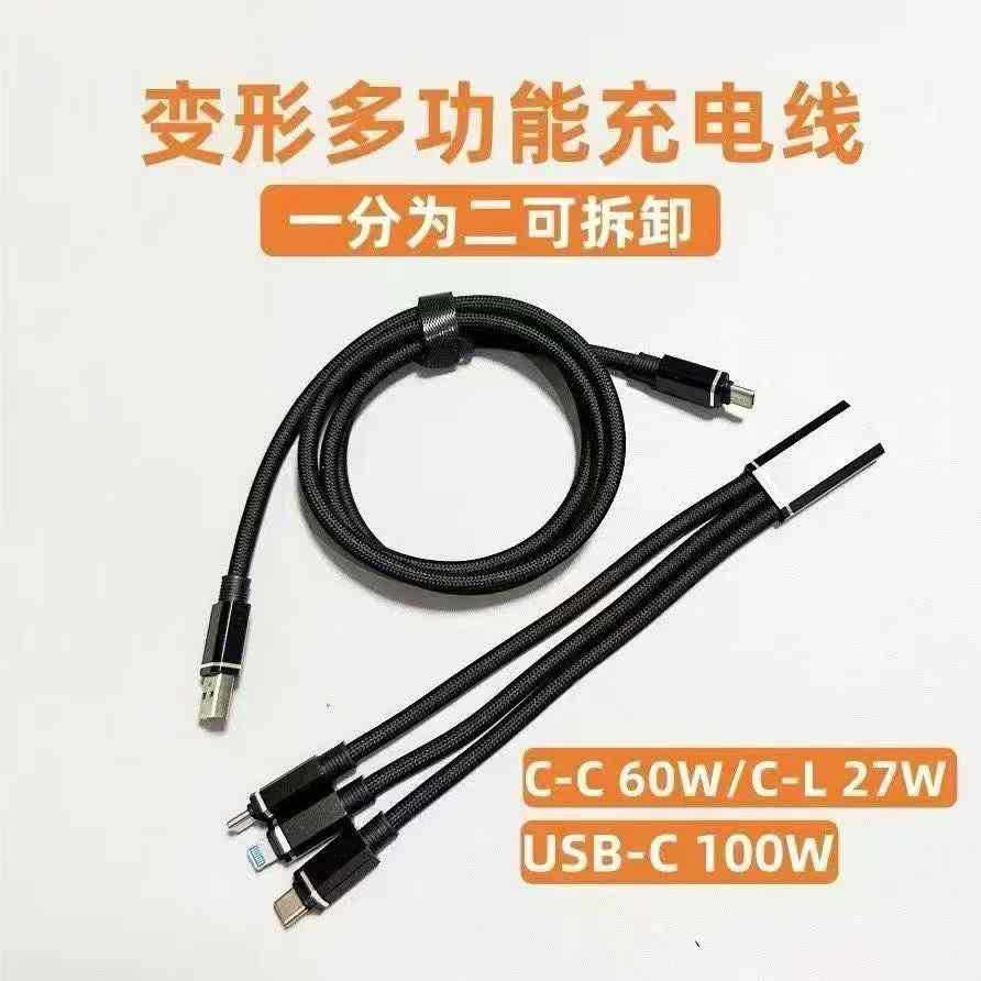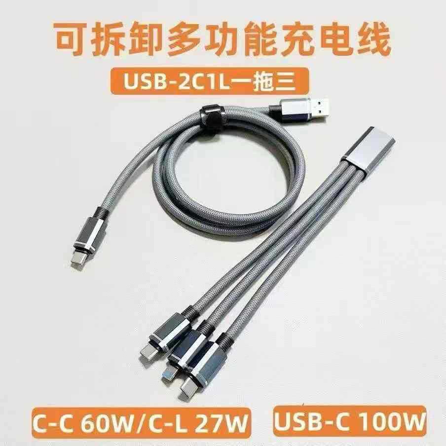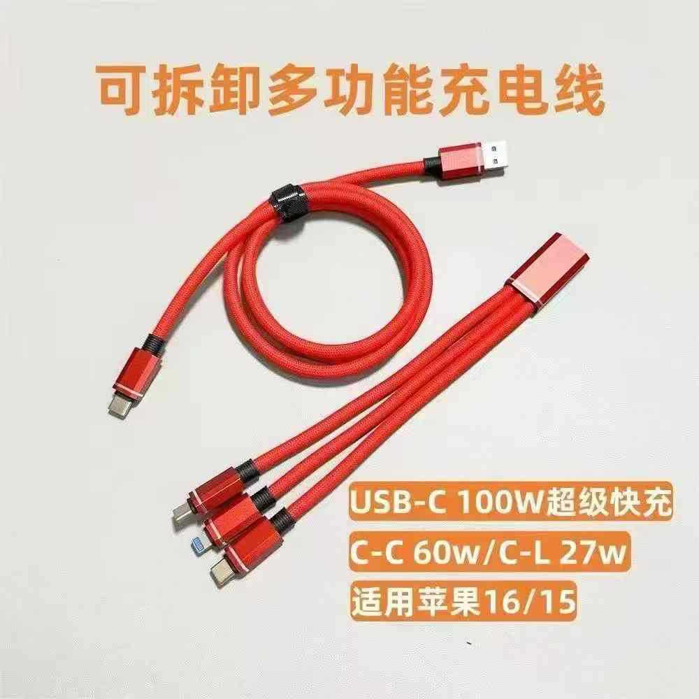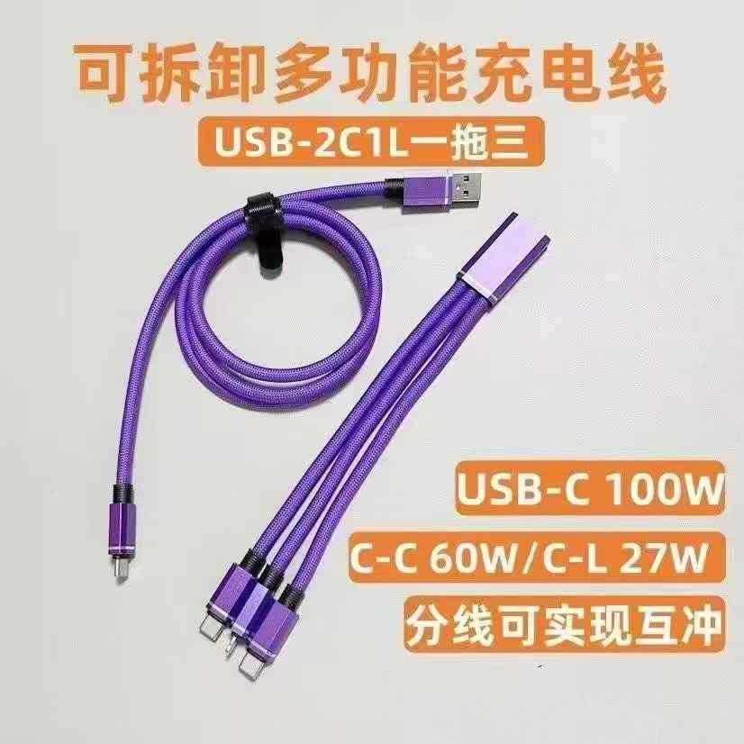 尼龙编织一拖三可分体式数据线三合一超级快充充电线适用安卓华为