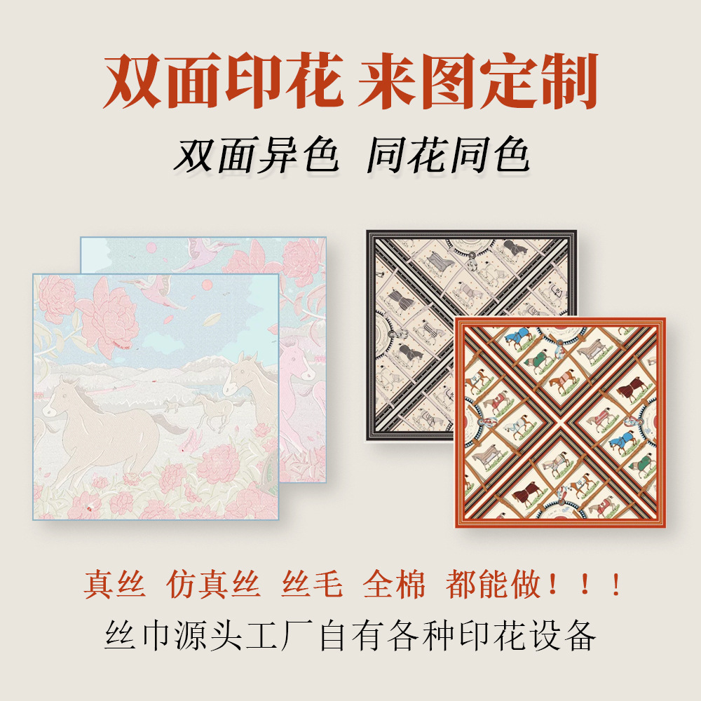 工厂直通双面印花丝巾定制小批量双面印加工真丝方巾三角巾Twilly