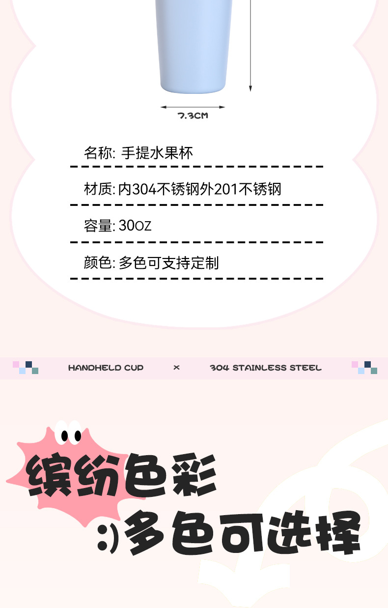 跨境热销30oz手提水果杯大容量304不锈钢保温杯便携带手提汽车杯