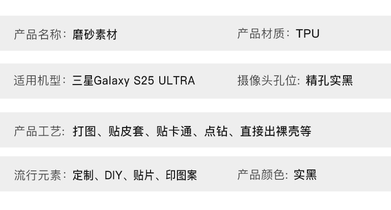 适用于三星Galaxy S25 ULTRA手机壳手机套保护套磨砂素材TPU定 制,批发价,价格:1.5,厂家直销,适用于三星Galaxy S25 ULTRA手机壳手机套保护套磨砂素材TPU定 制,免费拿样。