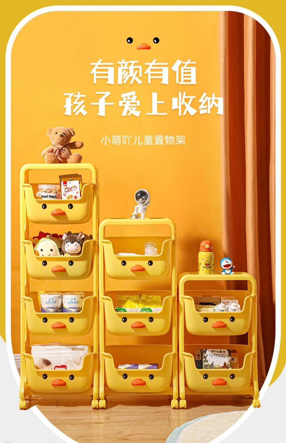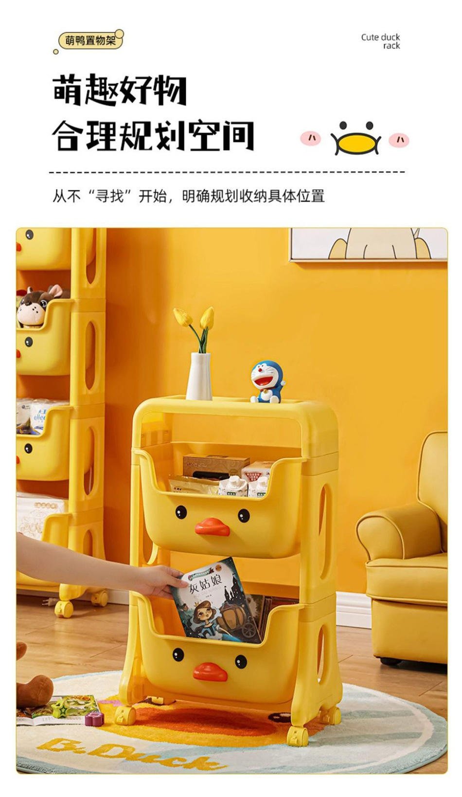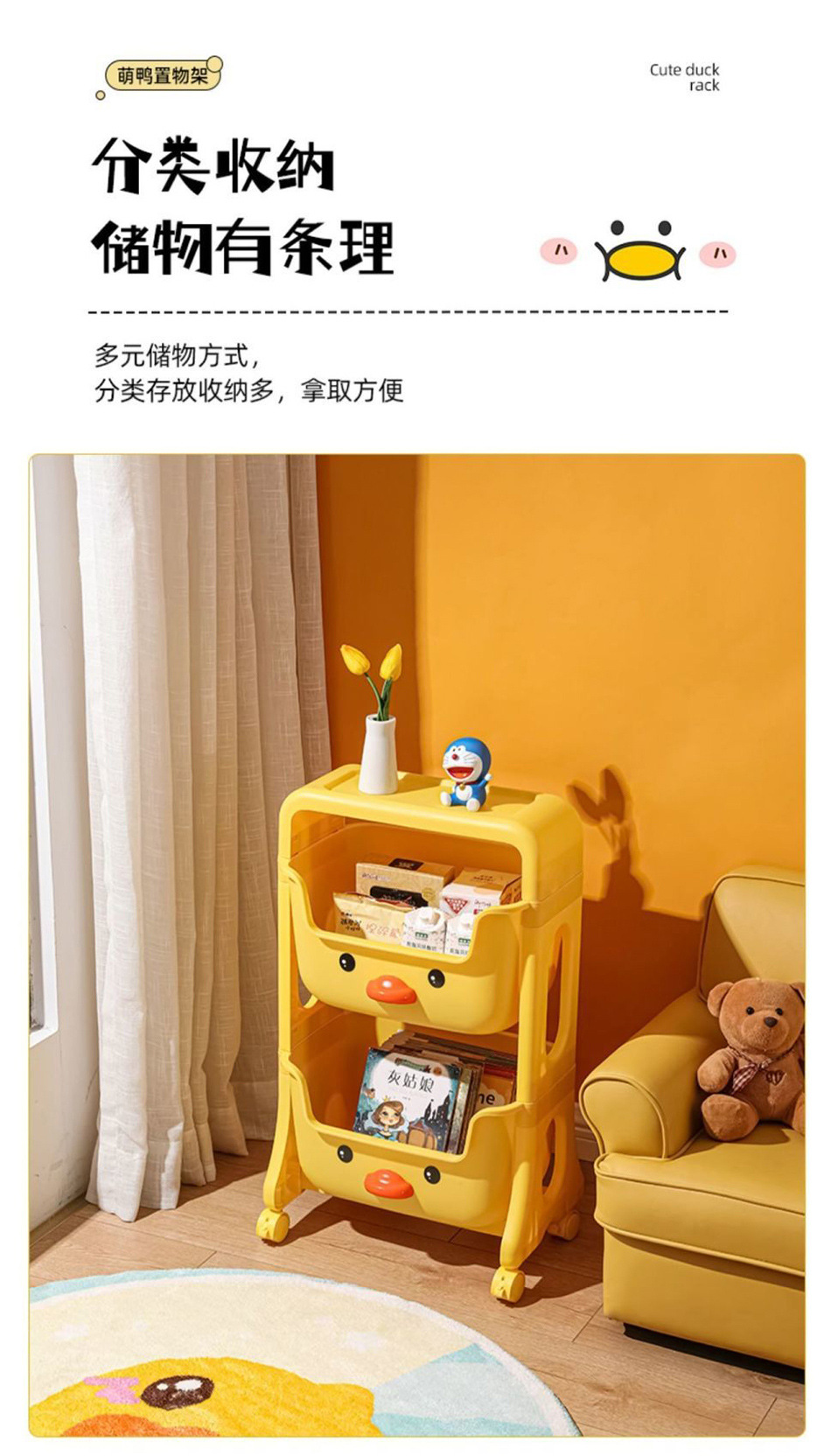 代发卡通小推车置物架可移动书本零食收纳架儿童多层床头置物架