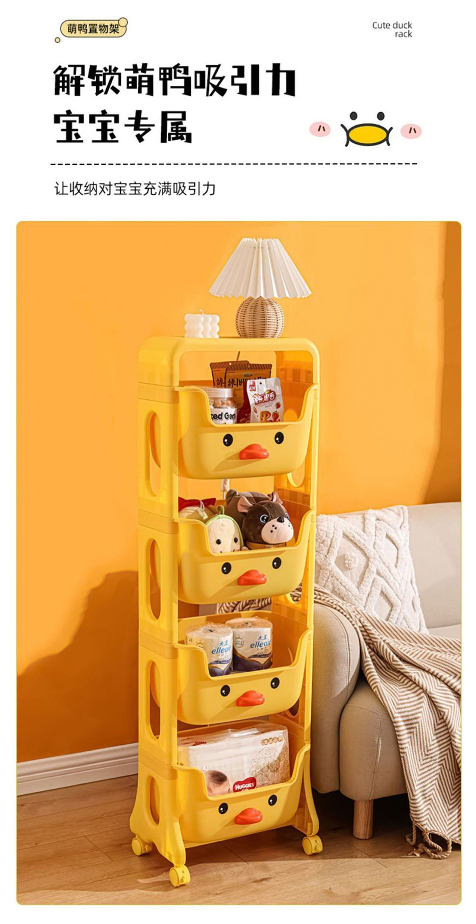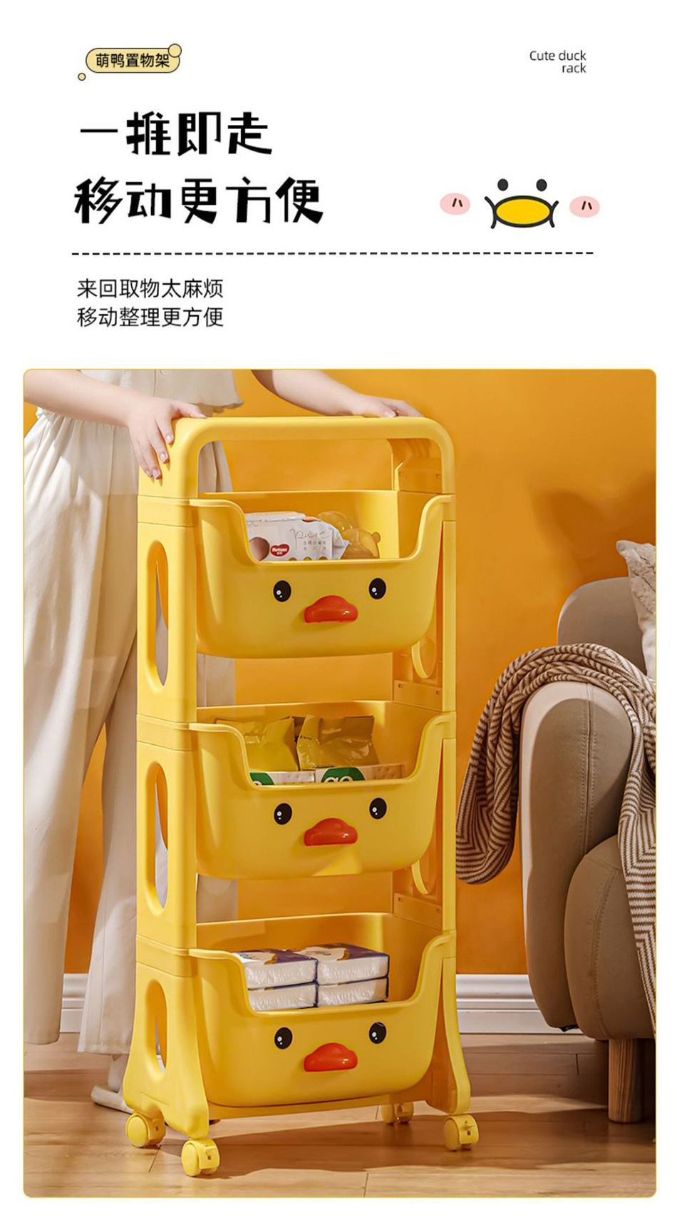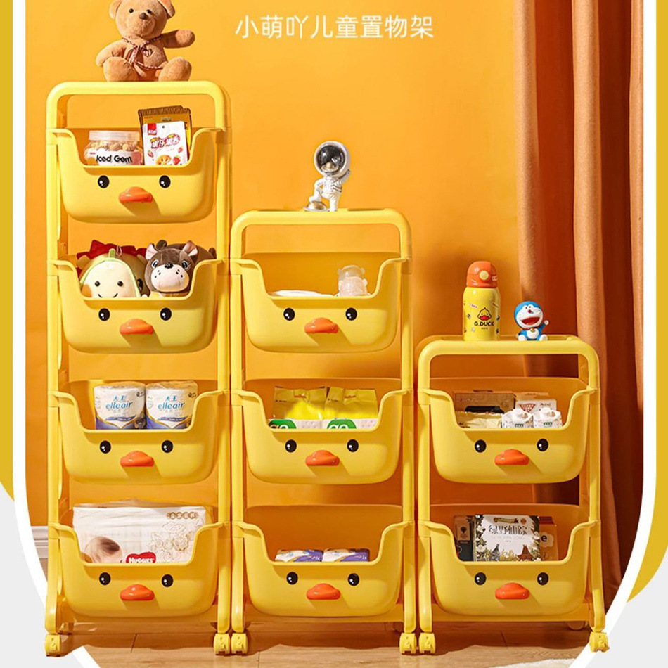 代发卡通小推车置物架可移动书本零食收纳架儿童多层床头置物架