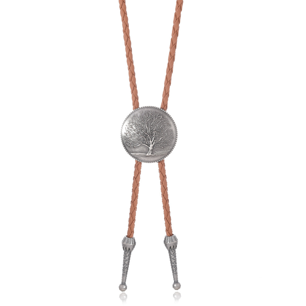 复古生命树纹编织皮绳波洛领结男女通用西部风金属吊坠项链配饰