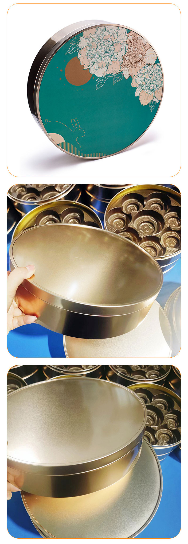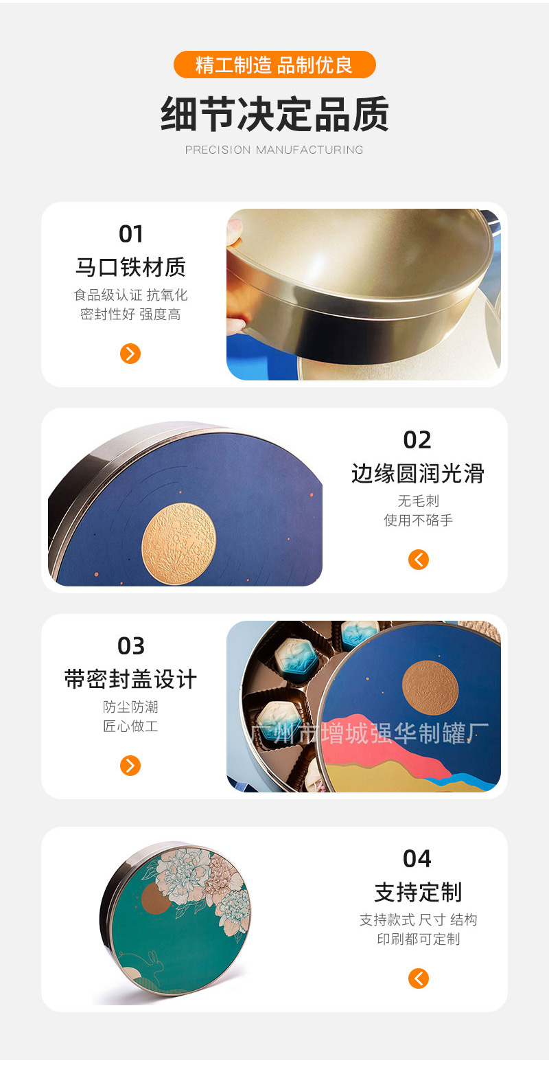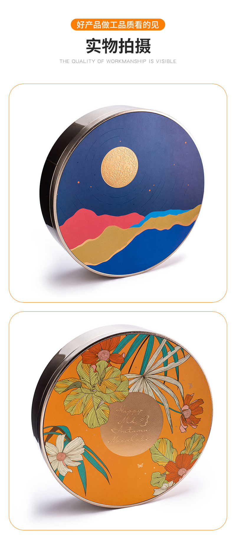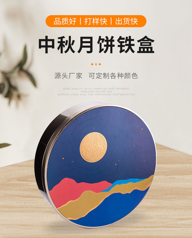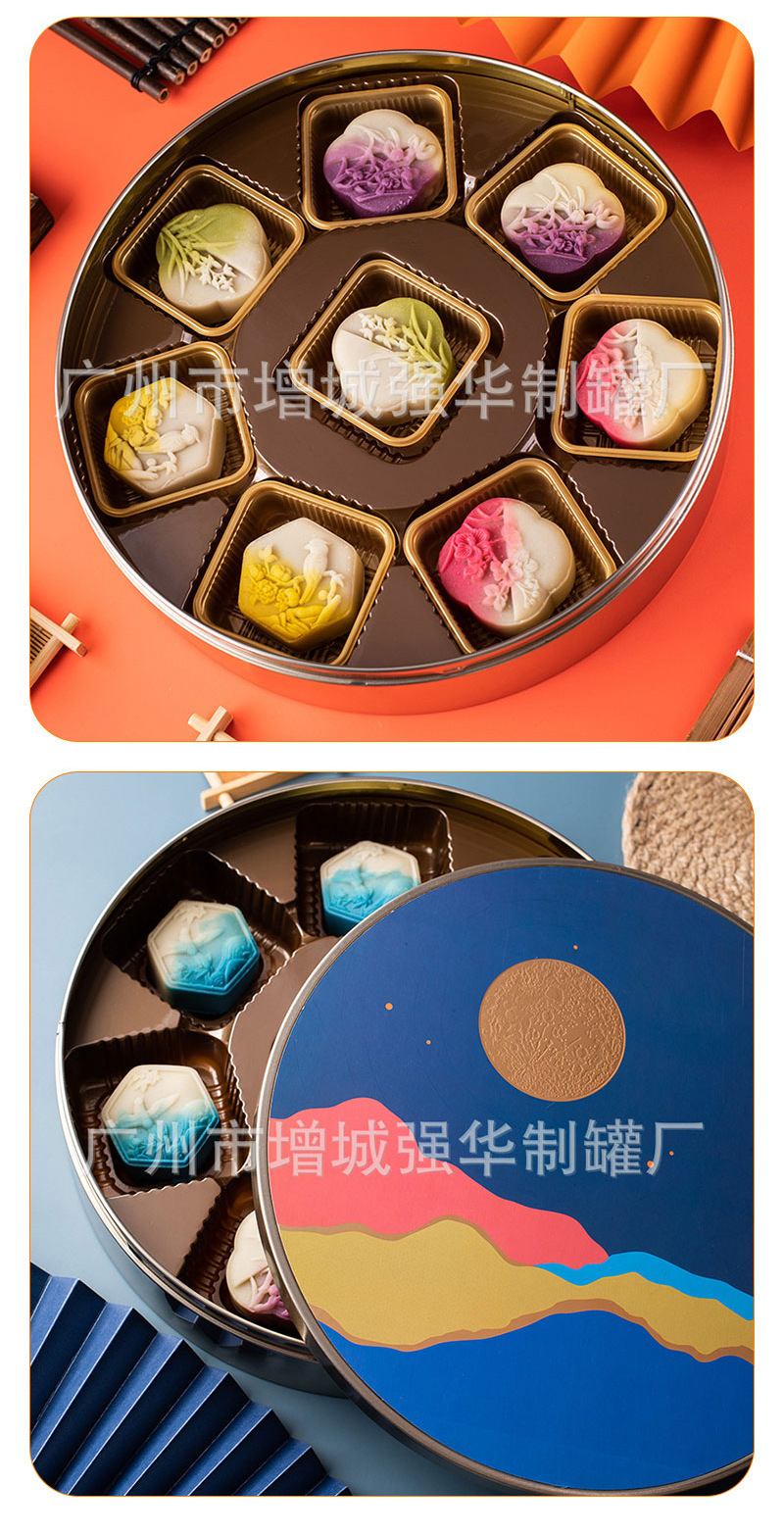 七星伴月中秋礼盒月饼铁盒圆形贴纸换标预定金属厂家批发手提