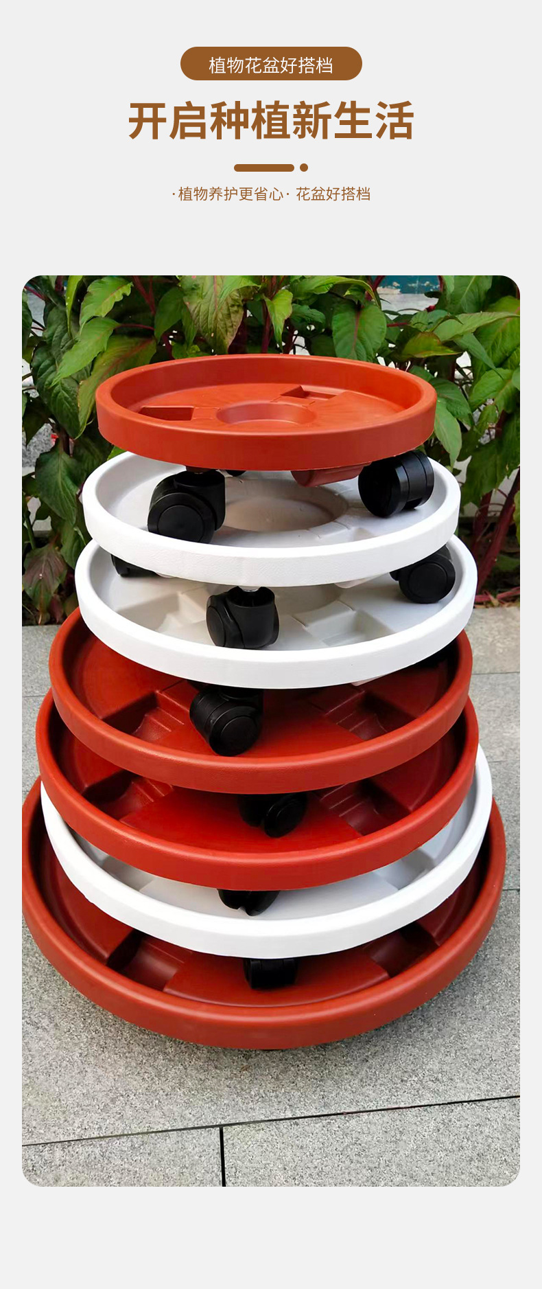 C型轮托盘带轮便捷花盆托盘塑料红色白色移动底座接水盘包邮托盘