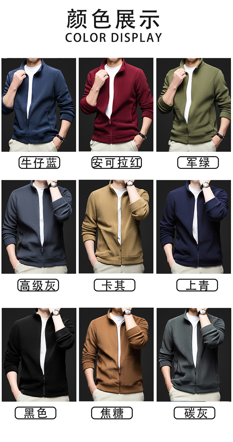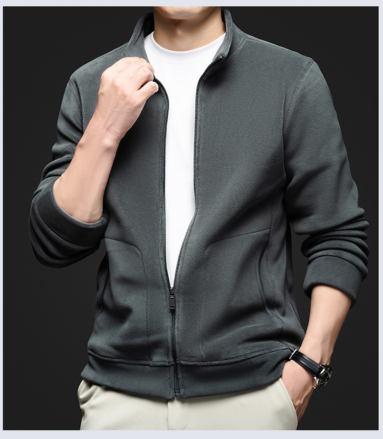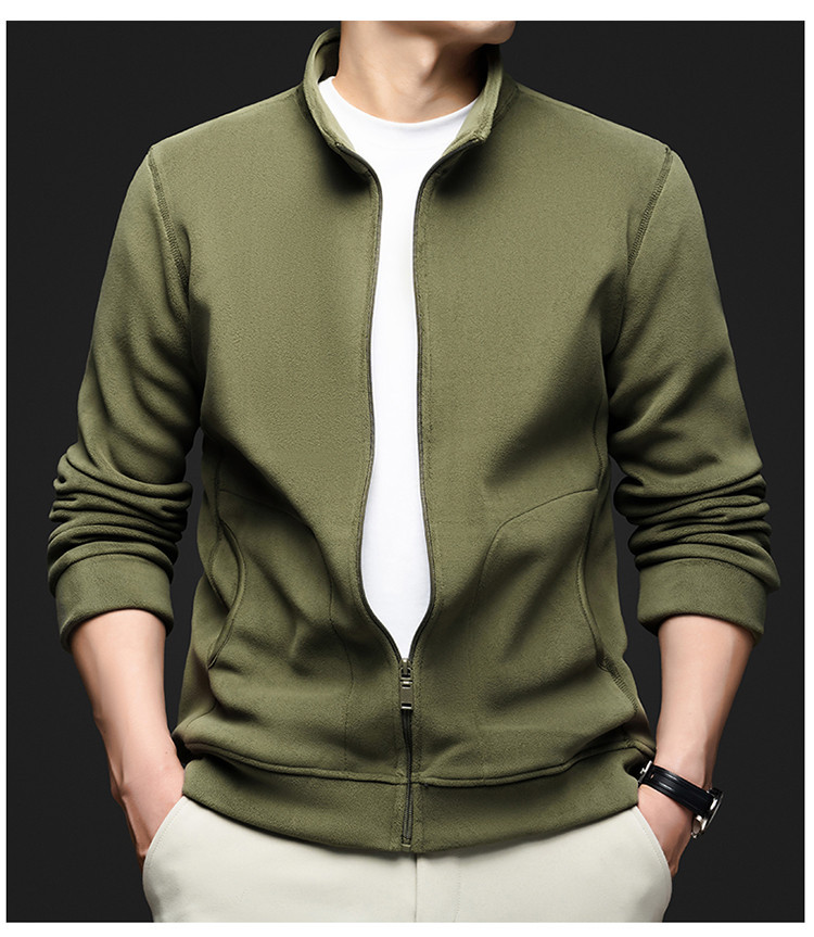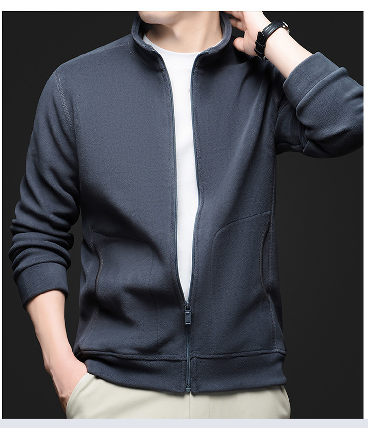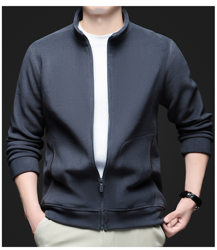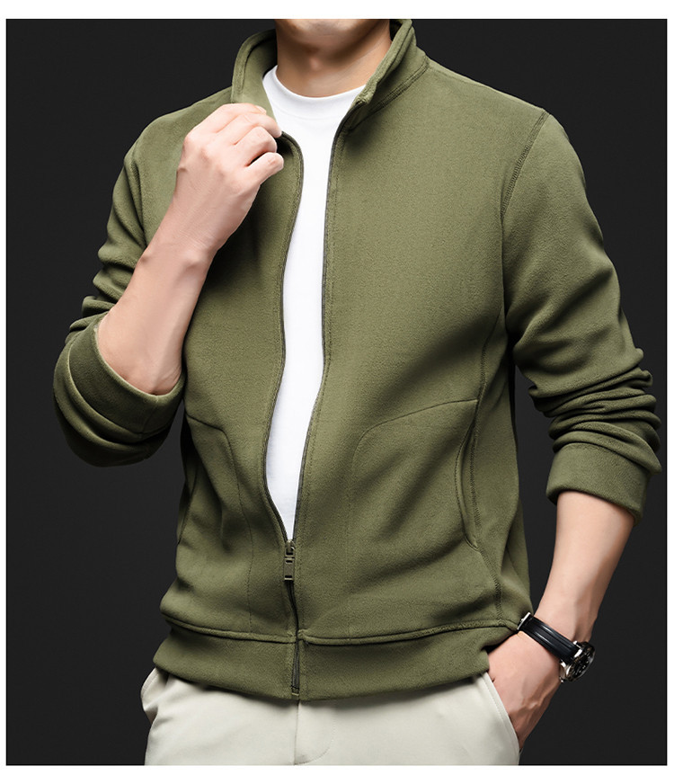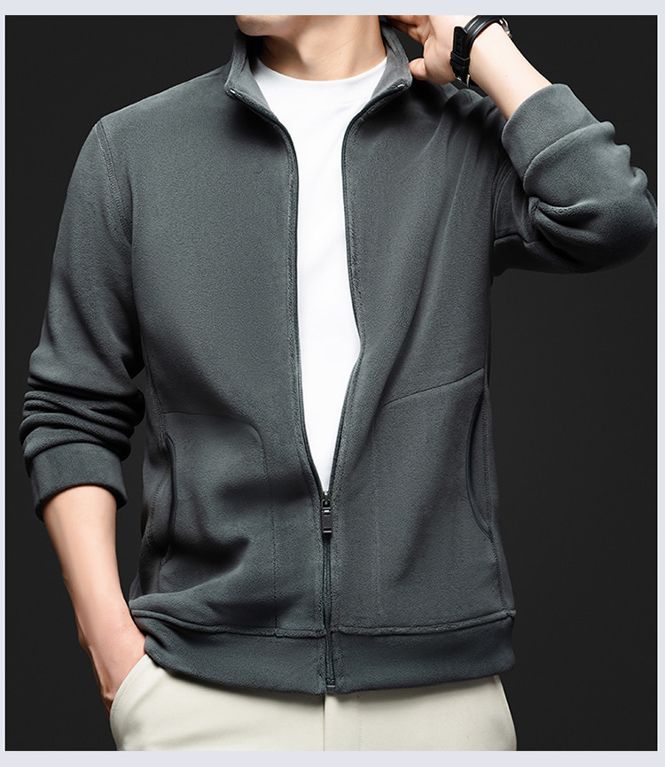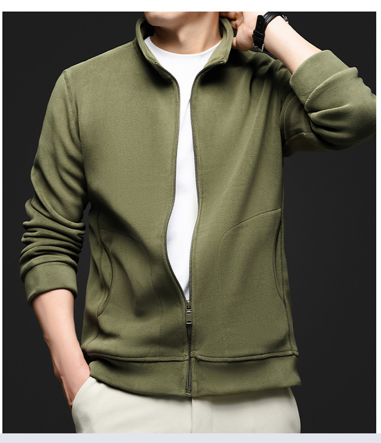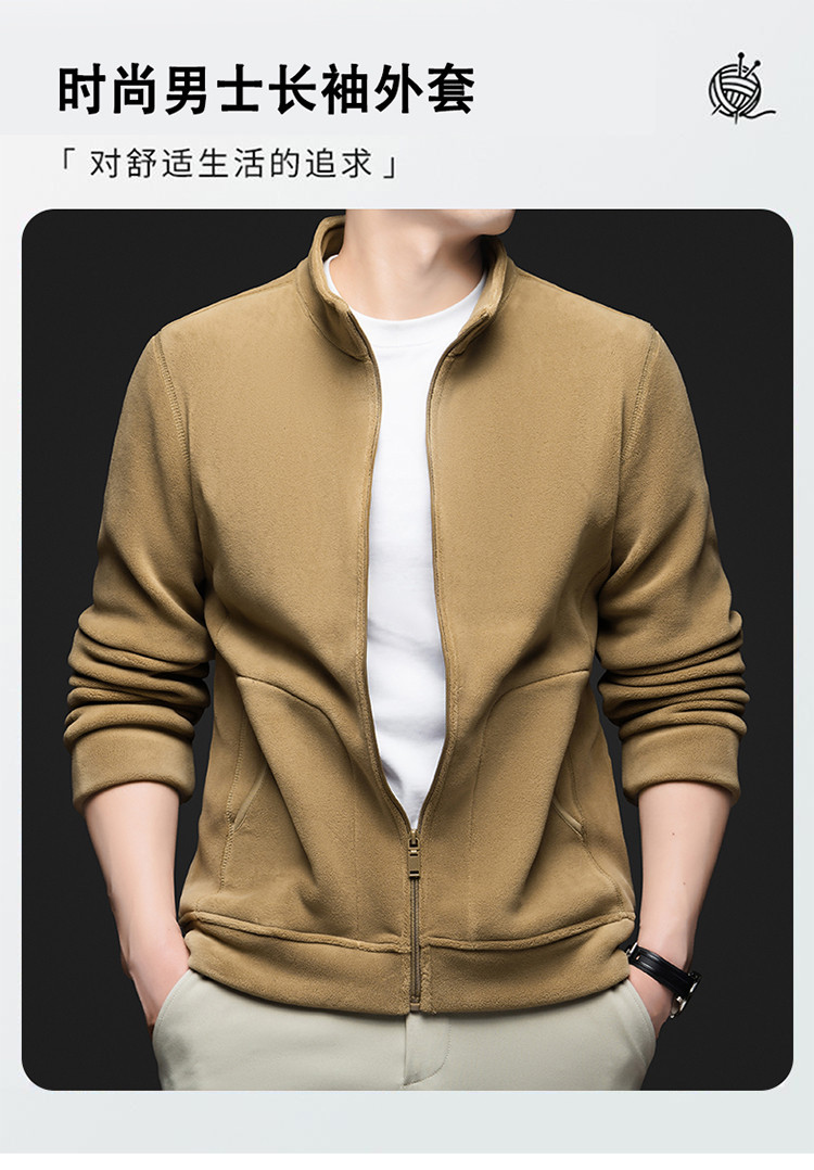 秋冬季开衫摇粒绒男士卫衣运动户外长袖立领大码开衫纯色休闲