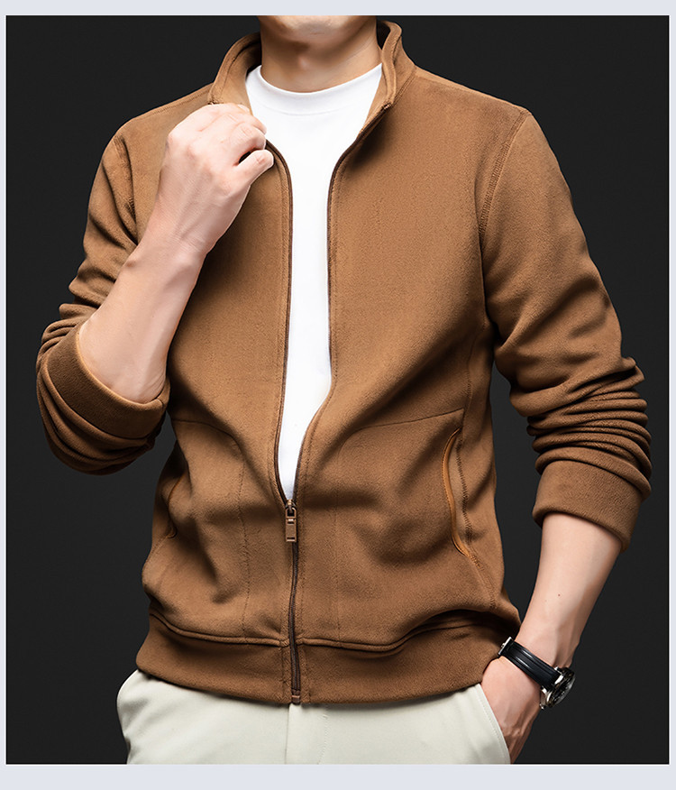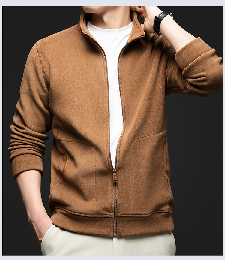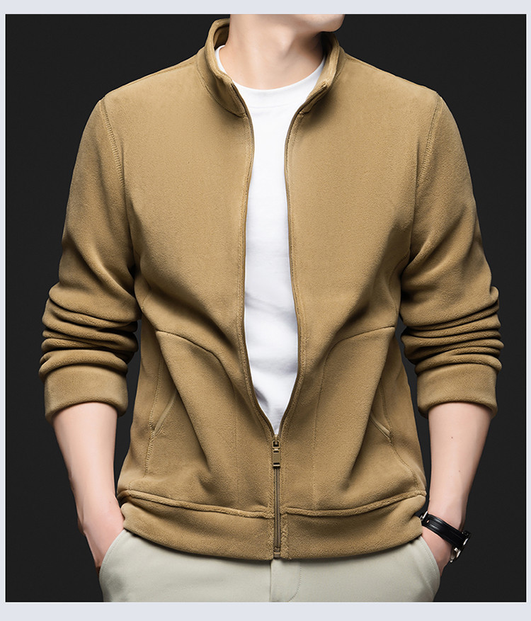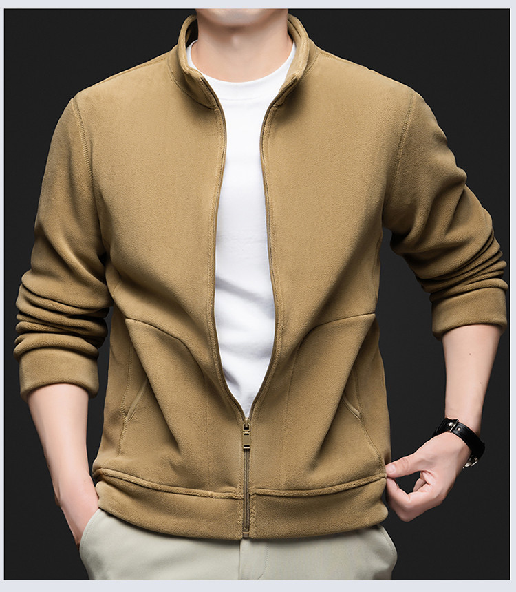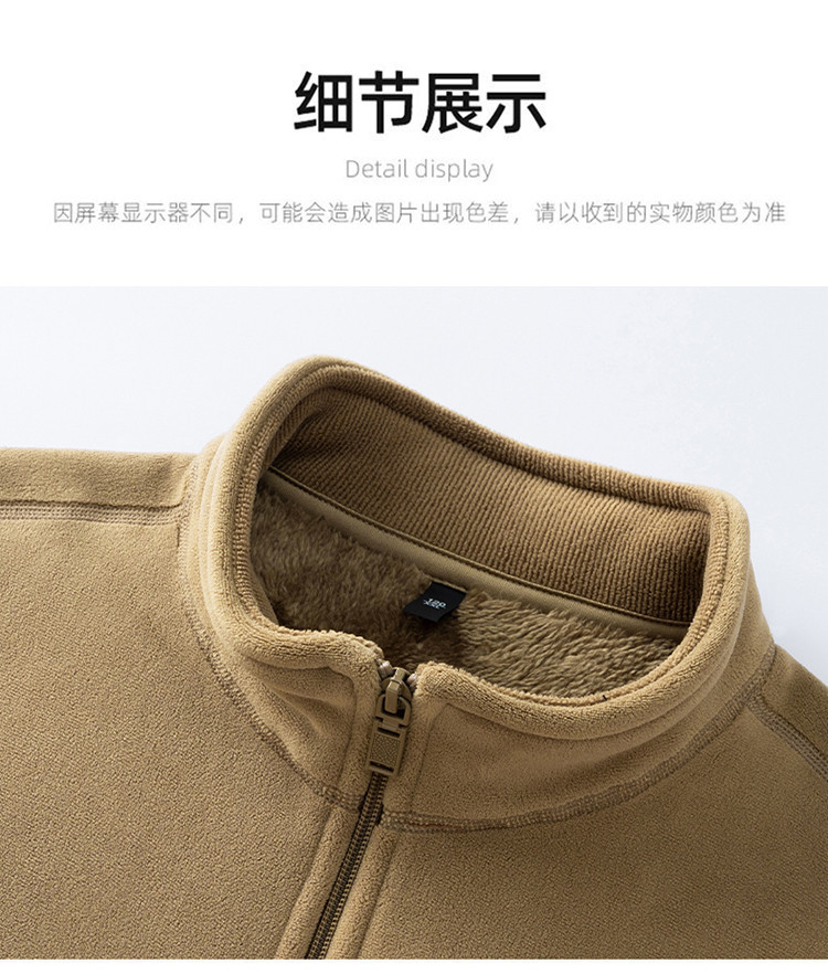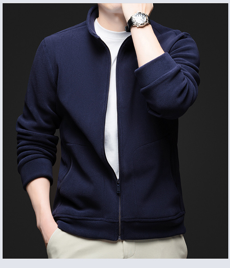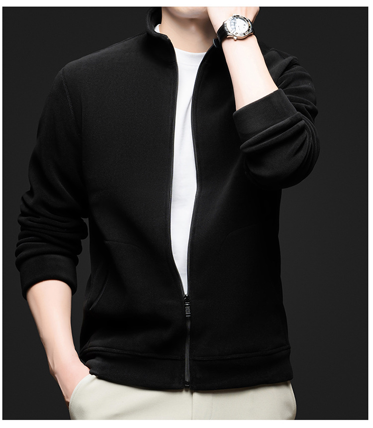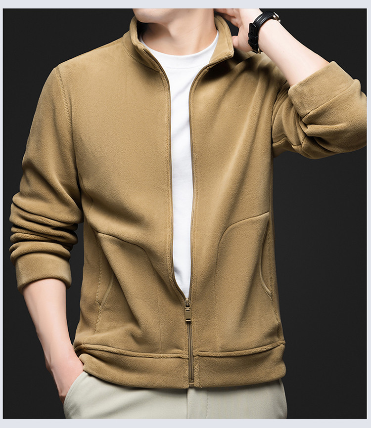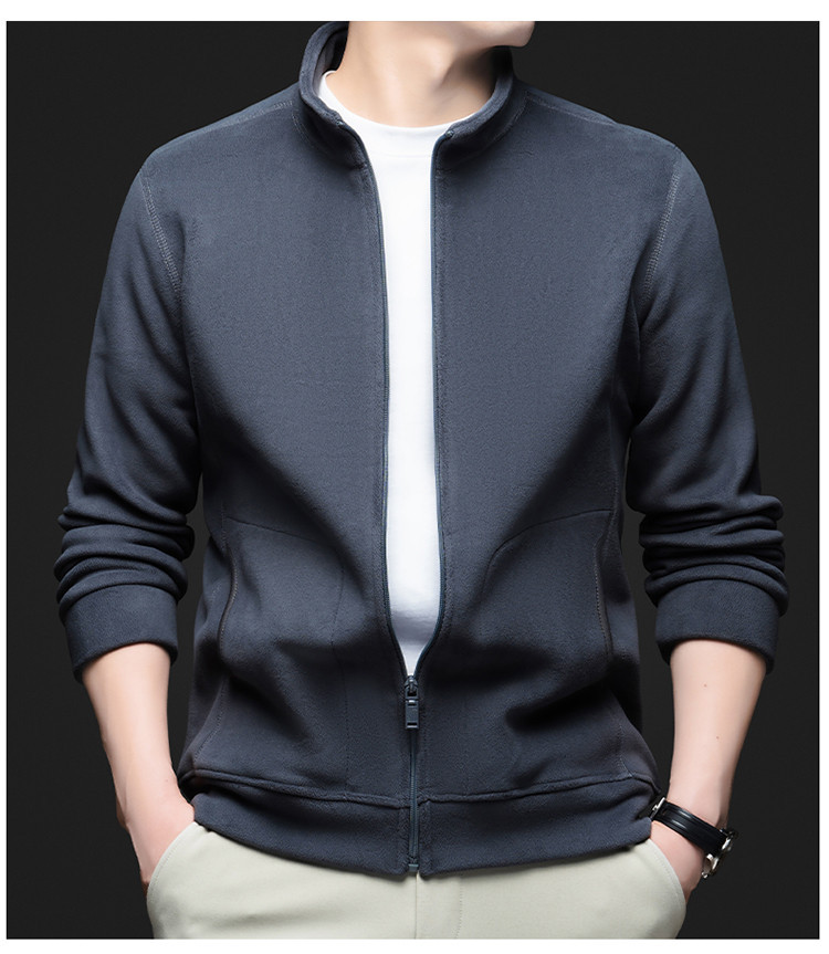 秋冬季开衫摇粒绒男士卫衣运动户外长袖立领大码开衫纯色休闲