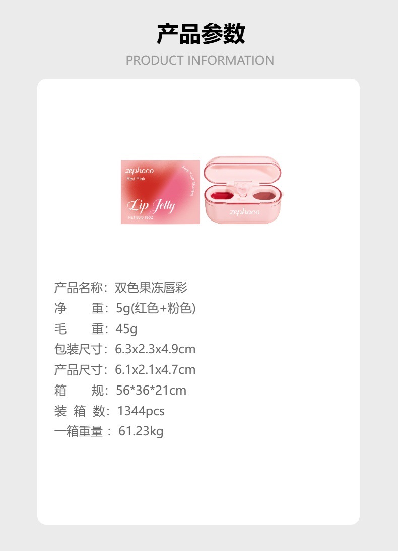 zephoco双色果冻唇彩 莹润光泽细腻轻盈自然顺滑日常百搭唇部彩妆,批发价,价格:10,厂家直销,zephoco双色果冻唇彩 莹润光泽细腻轻盈自然顺滑日常百搭唇部彩妆,免费拿样。